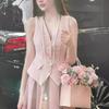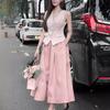 Traje estilo oro para hija de mujer chaleco rosa sobrefalda conjunto de dos piezas temperamento francés estilo socialité sensación de alta gama de lujo ligero un conjunto