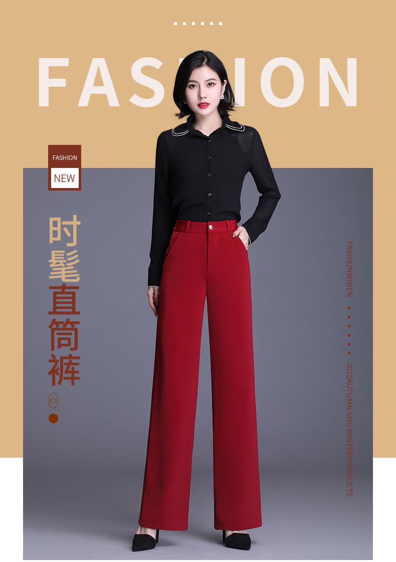 2025 Primavera y Otoño Nuevo Pantalón de Pierna Recta de Cintura Alta para Mujer Elástico Trasero Moda Casual Pantalones de Mujer Adelgazantes Pierna Estrecha Ancha Pantalones Largos