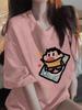 Camiseta de algodón holgada de manga corta con estampado de dibujos animados para mujer, estilo casual, novedad de verano 2024
