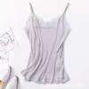 Chami nuevo encaje de seda acetato correa sexy cuello en V para mujer seda de morera camisa básica interior suelta corta