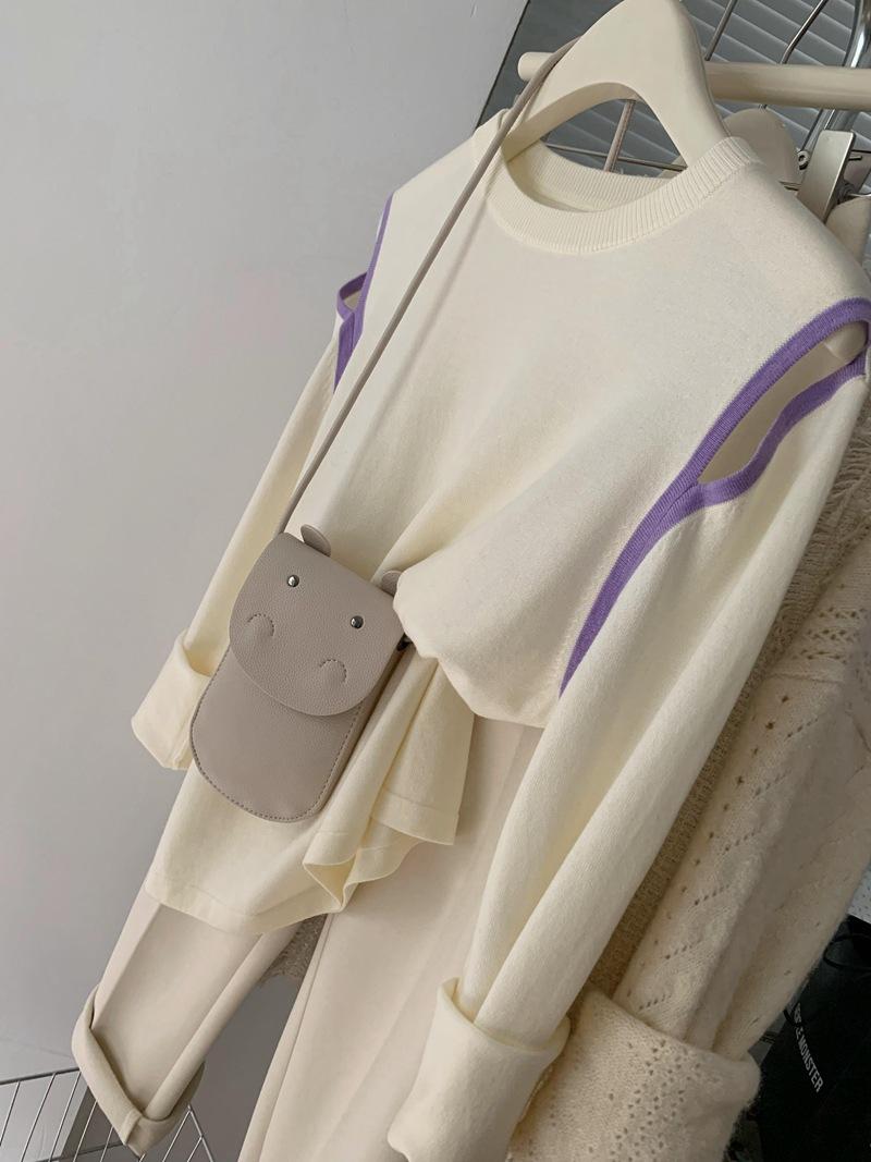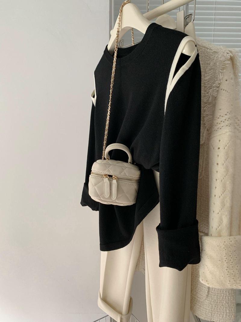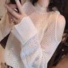 Suéter interior de otoño e invierno para mujer, suéter ahuecado de alta calidad, camisa de punto con hombros descubiertos en blanco