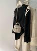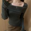 Camiseta básica de punto blanca con hombros descubiertos para mujer otoño e invierno suéter interior de alta calidad suéter de punto calado