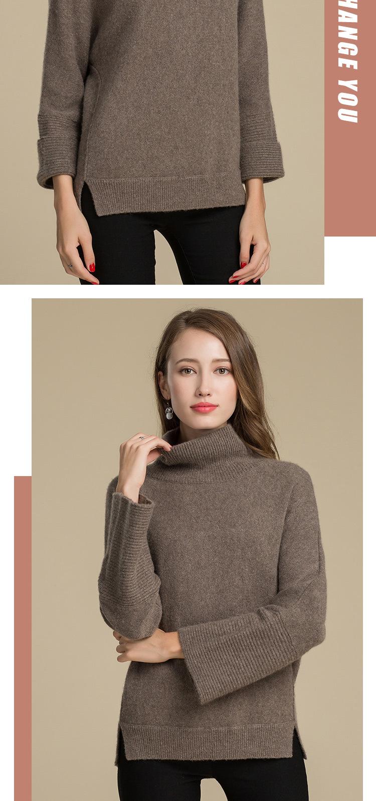 Suéter de cachemira nuevo para mujer al por mayor de fábrica, suéter de moda de cuello alto grueso para mujer, tejido de cachemira de manga larga