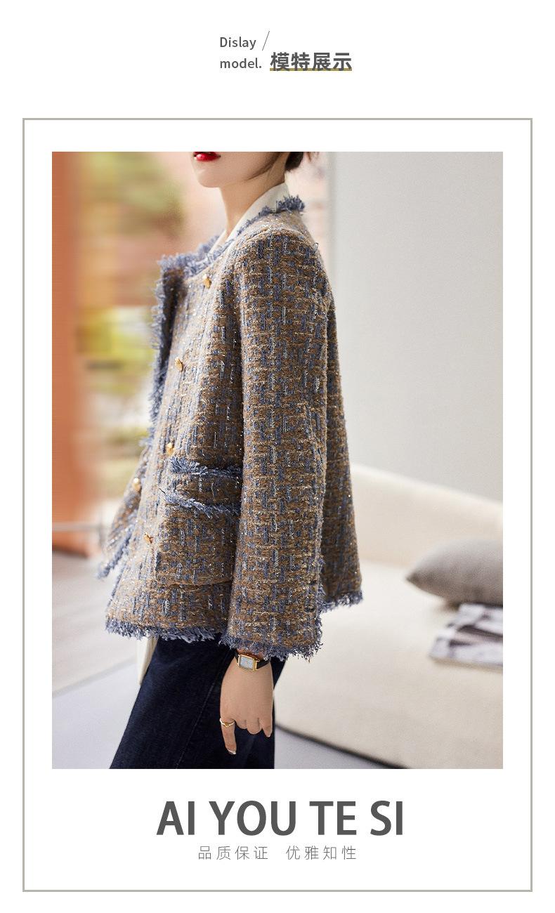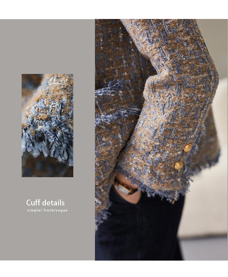 Chaqueta Tweed de Lana de Alta Gama con Flecos Cierre Cruzado, Top Corto para Mujer para Otoño y Primavera