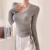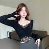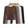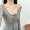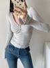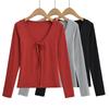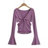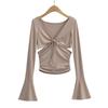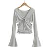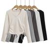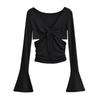 Camiseta de manga larga acampanada con cuello en V y cordones para chica sexy y pura, camiseta femenina de otoño 2023 con parte inferior ajustada y hueca