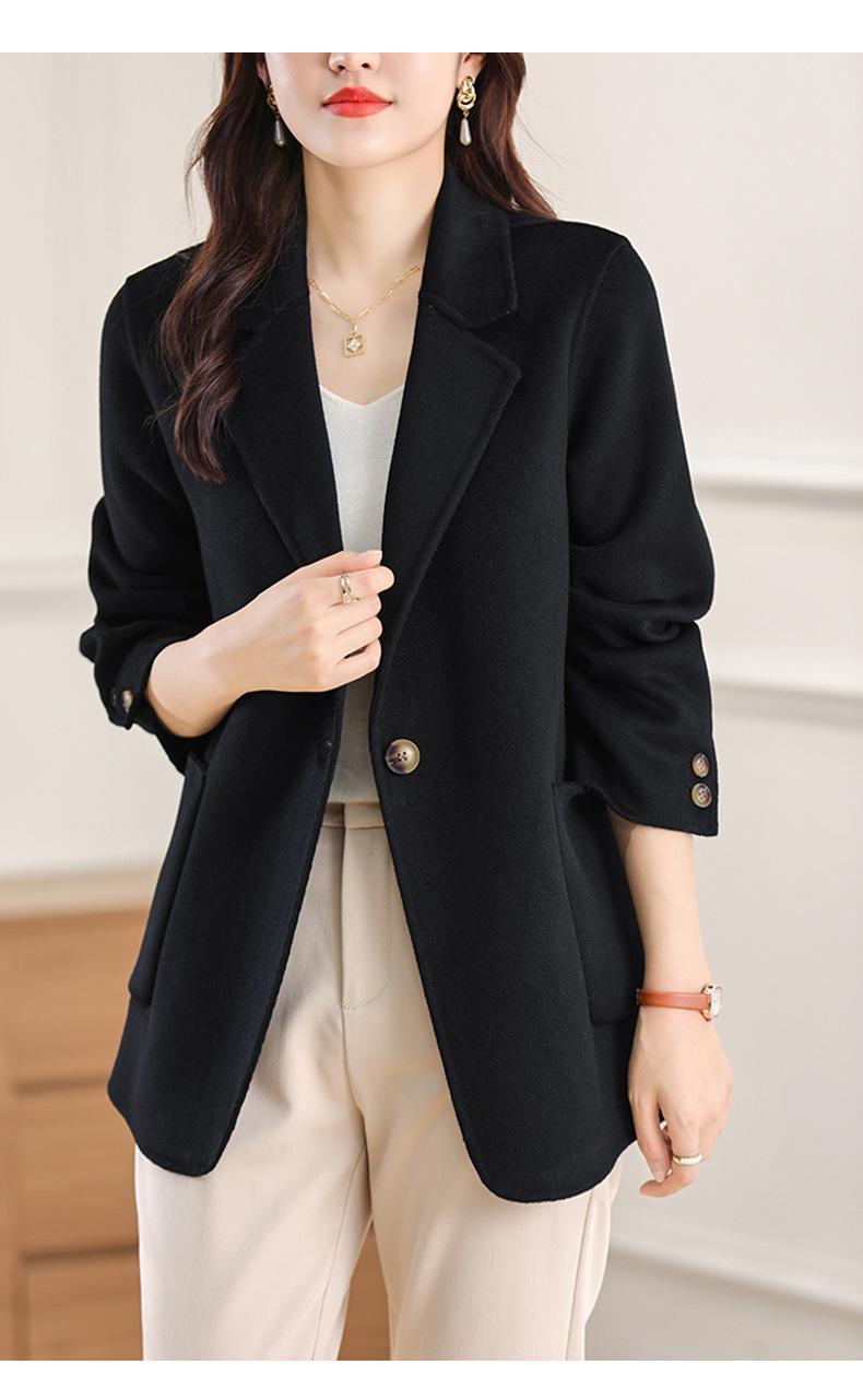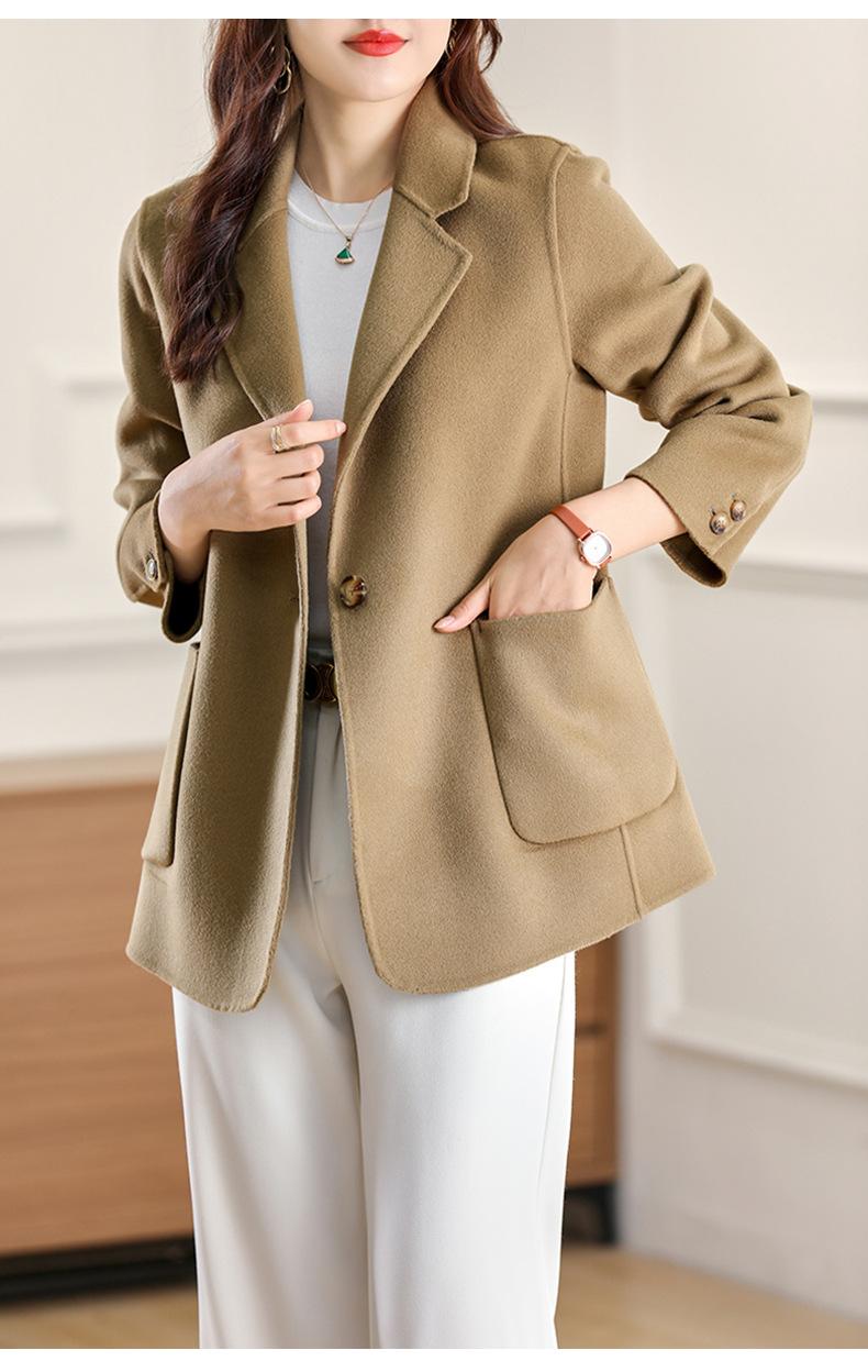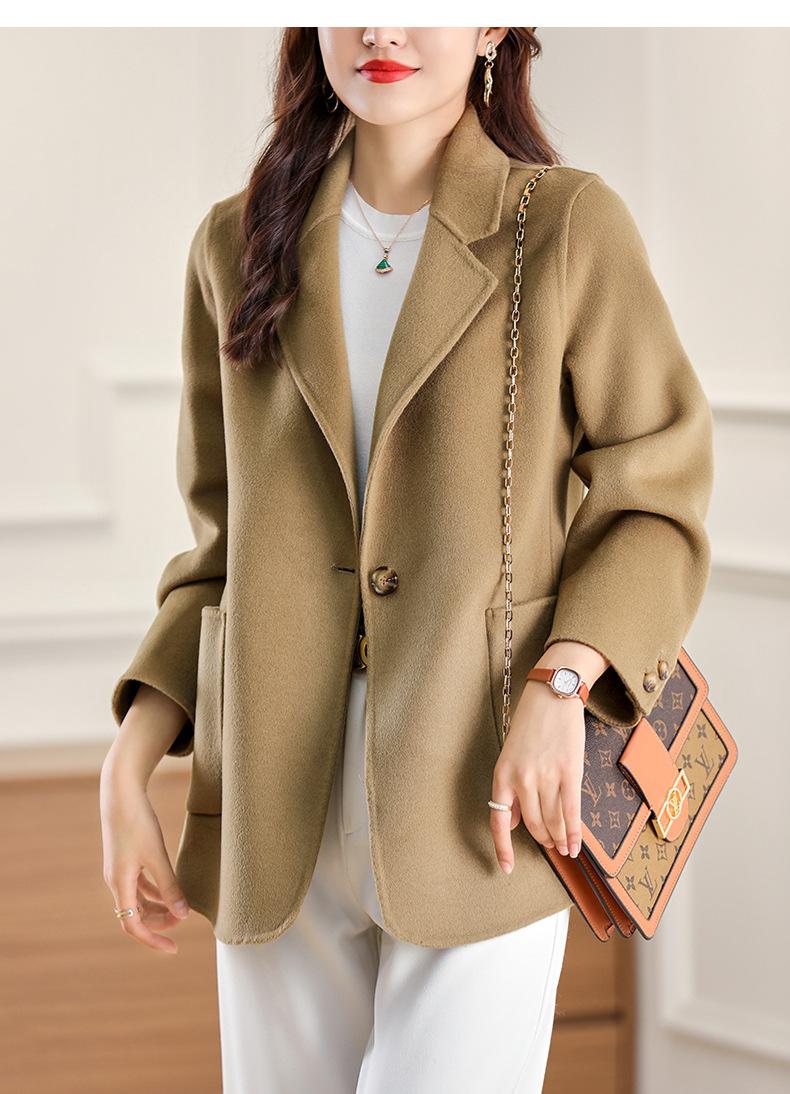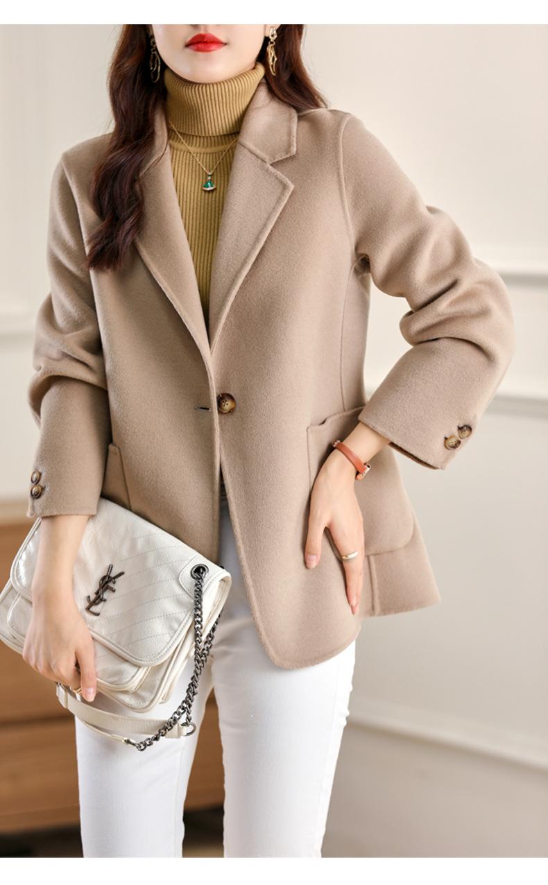 2024 Nuevo Otoño e Invierno Abrigo de Lana de Doble Vista para Mujer Abrigo de Lana Corto Ajustado con Cuello de Traje Estilo Commuter