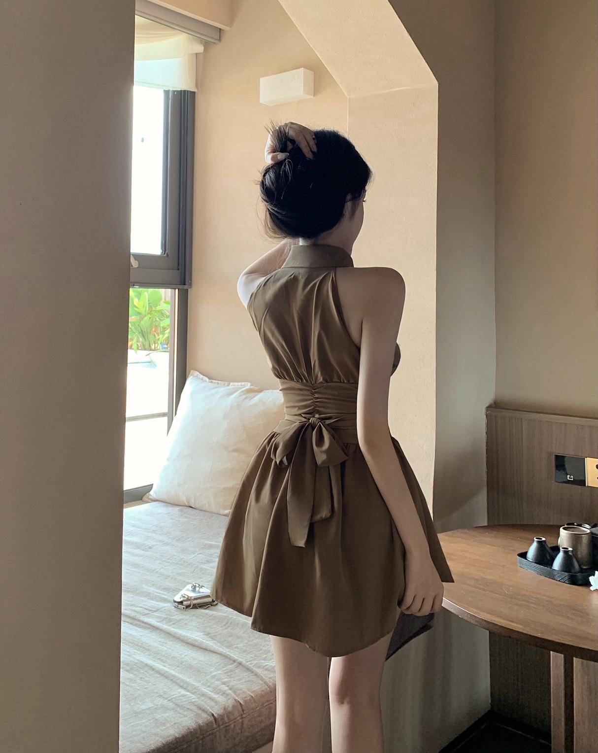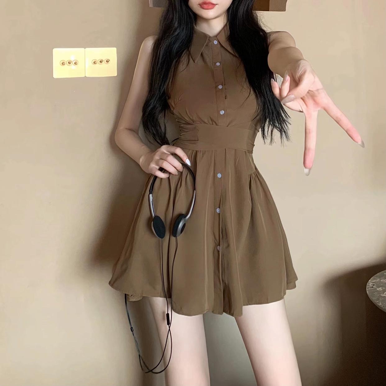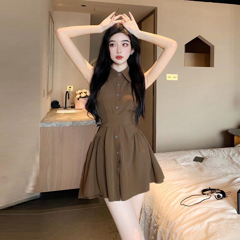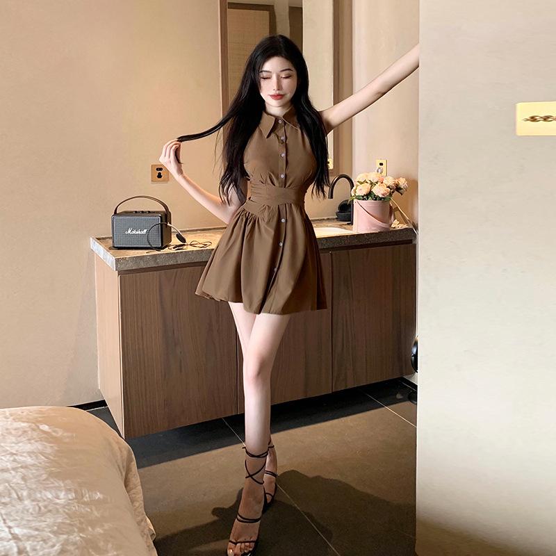 Vestido vintage sexy sin mangas para mujer, estilo europeo, elegante, con cintura ajustada, corte A, para verano