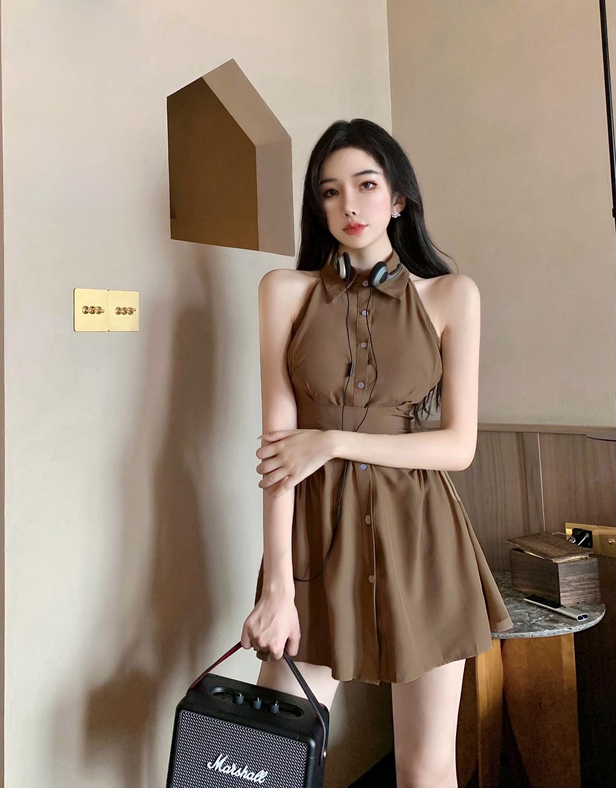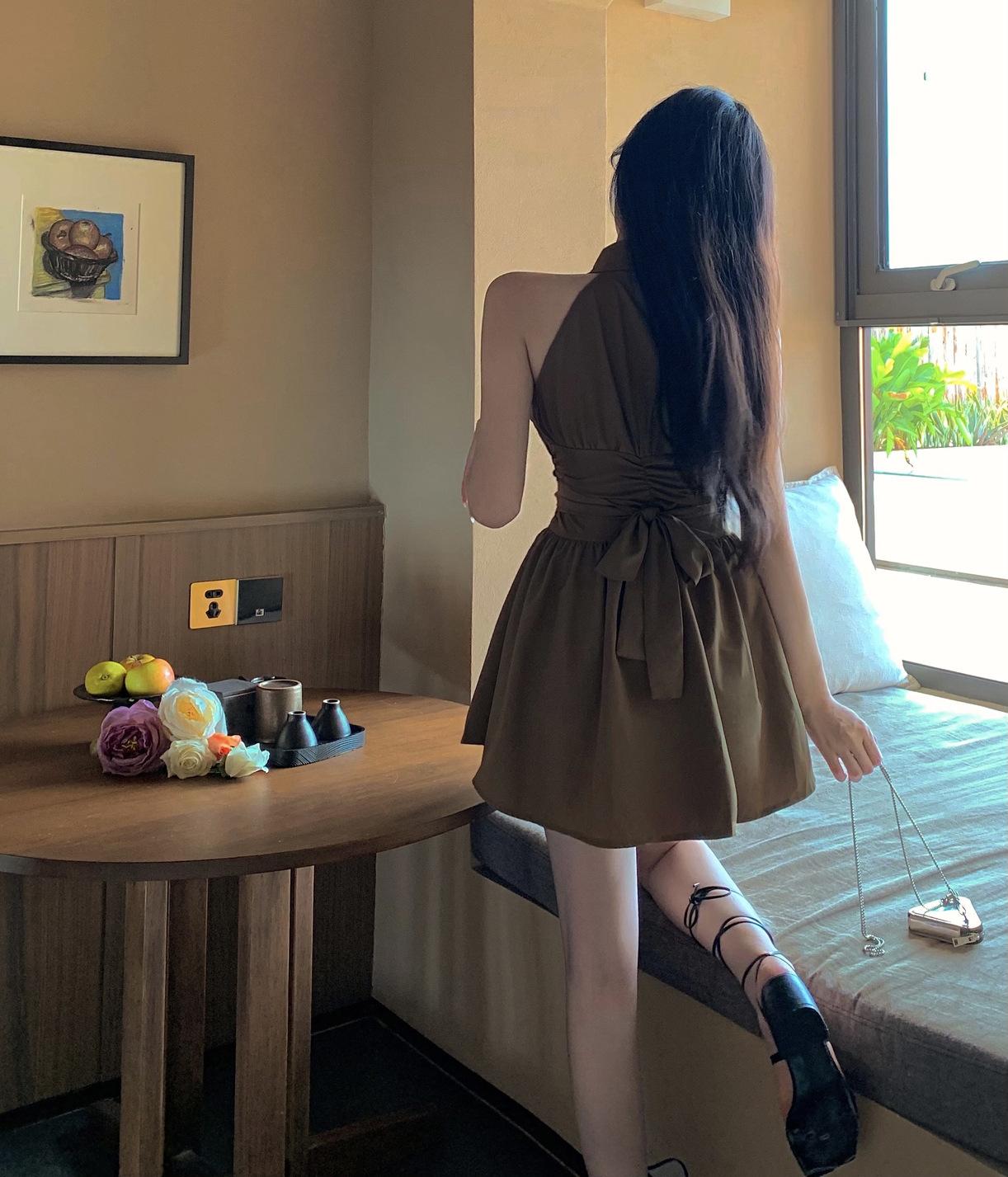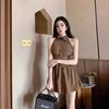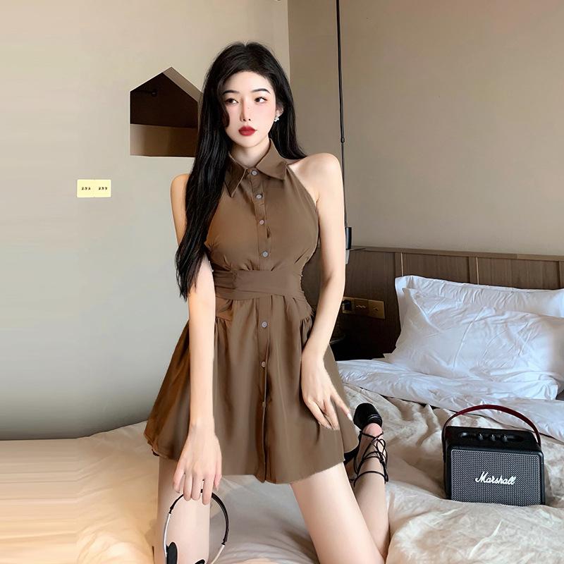 Vestido vintage sexy sin mangas para mujer, estilo europeo, elegante, con cintura ajustada, corte A, para verano