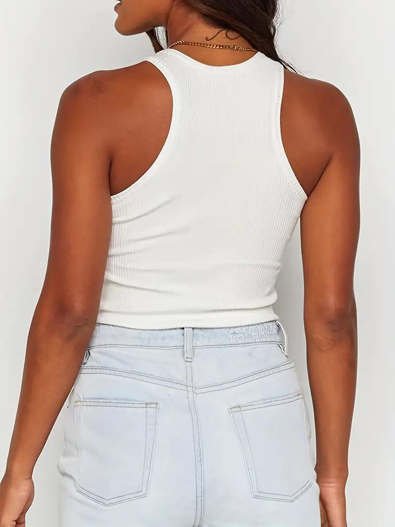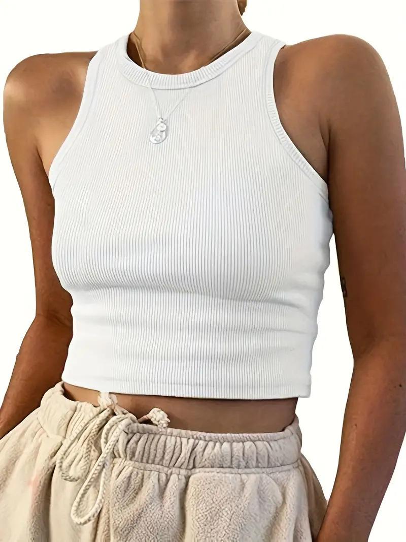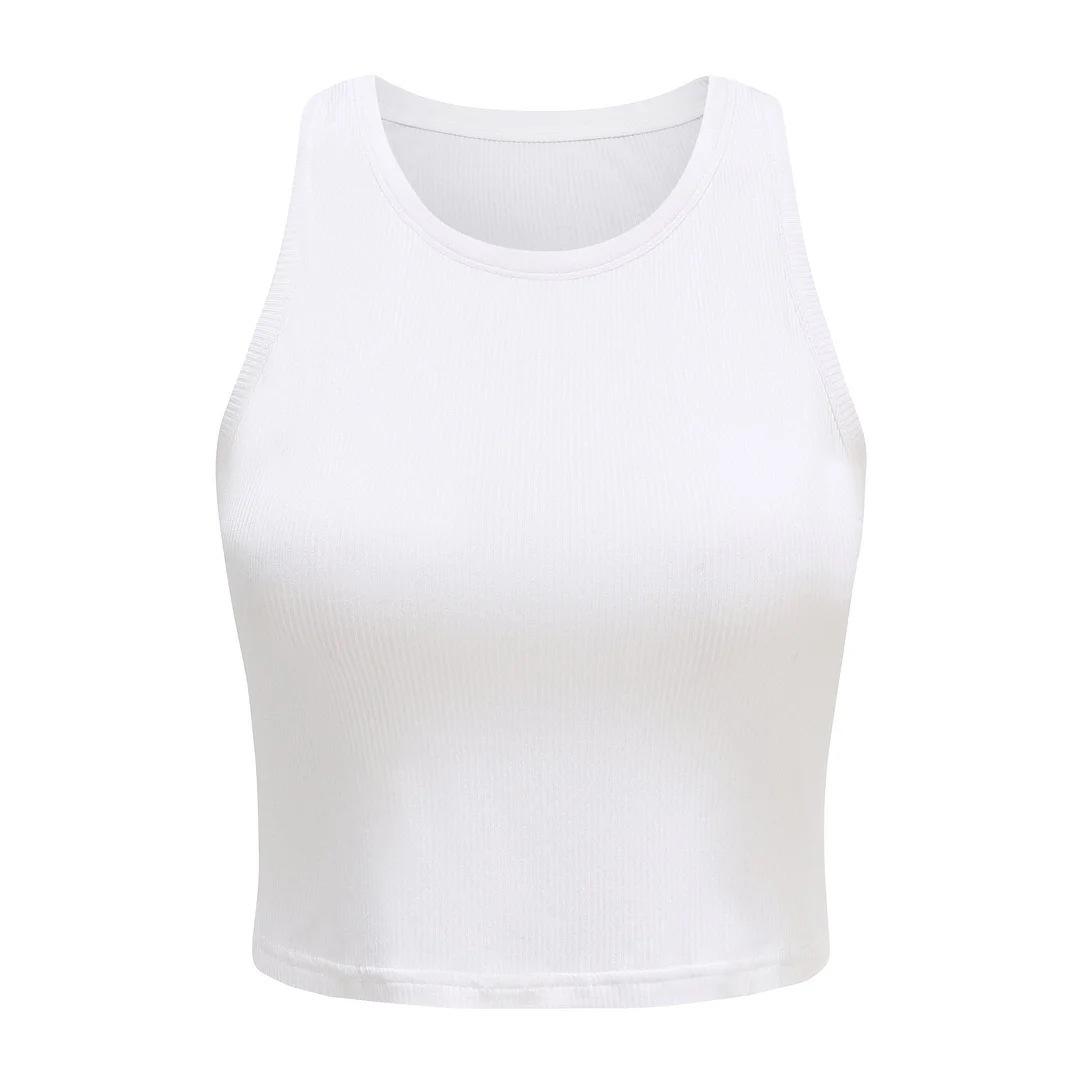 Top básico de color sólido simple de verano europeo y americano ins aliexpress para mujer deportivo sin mangas ajustado corto chaleco mujer