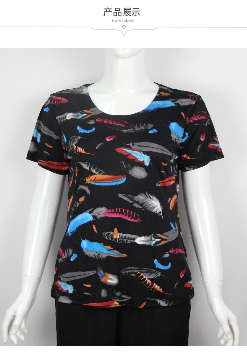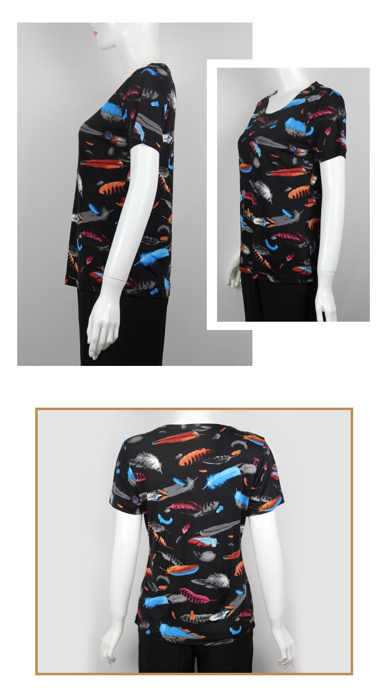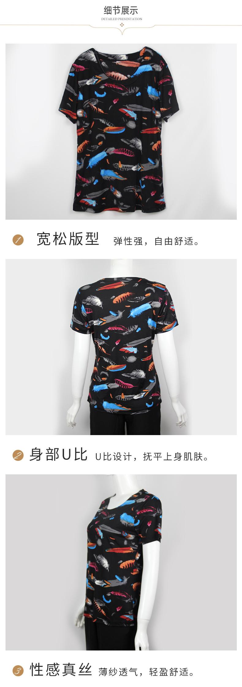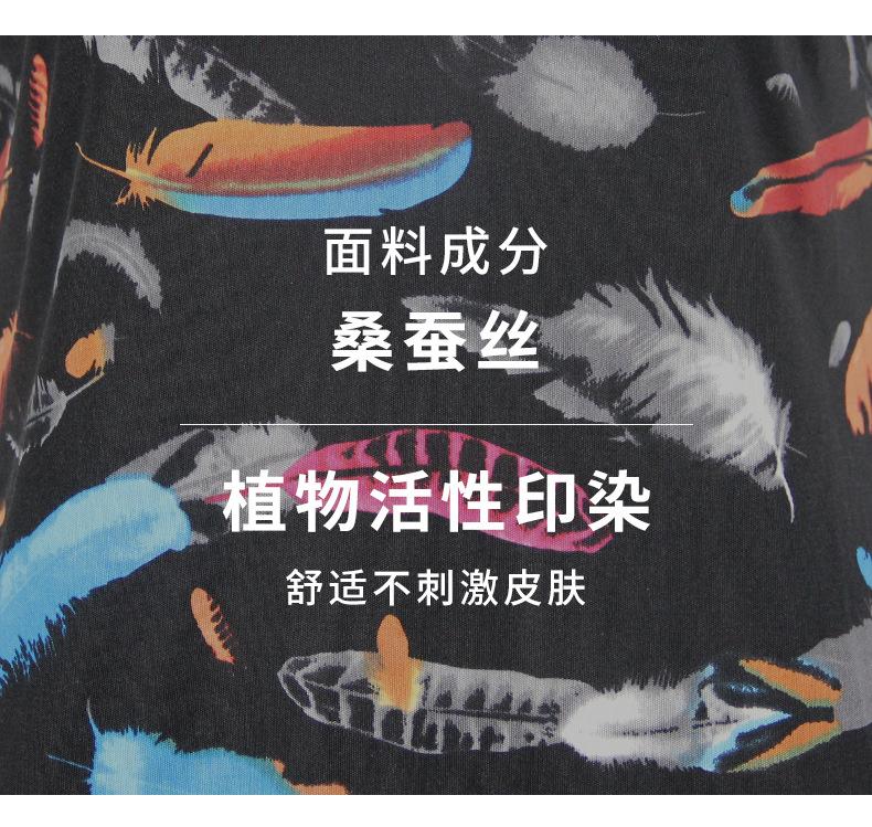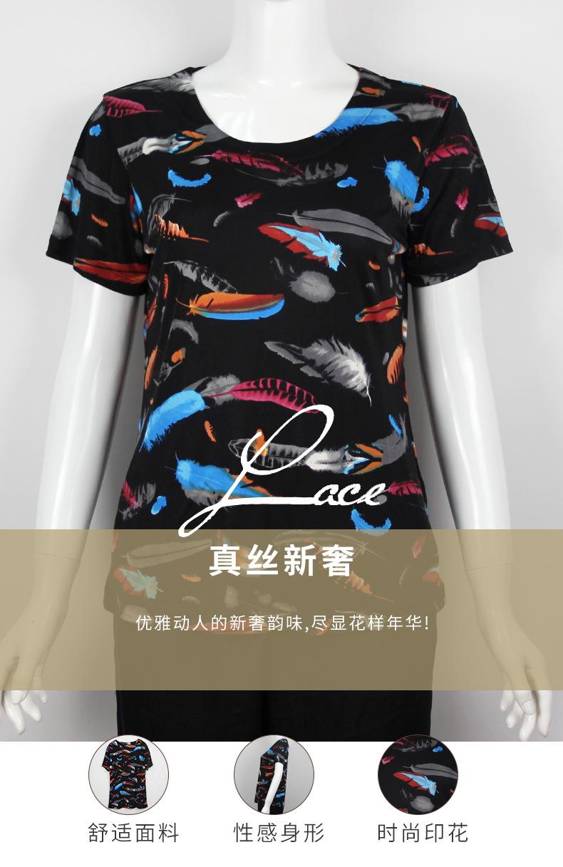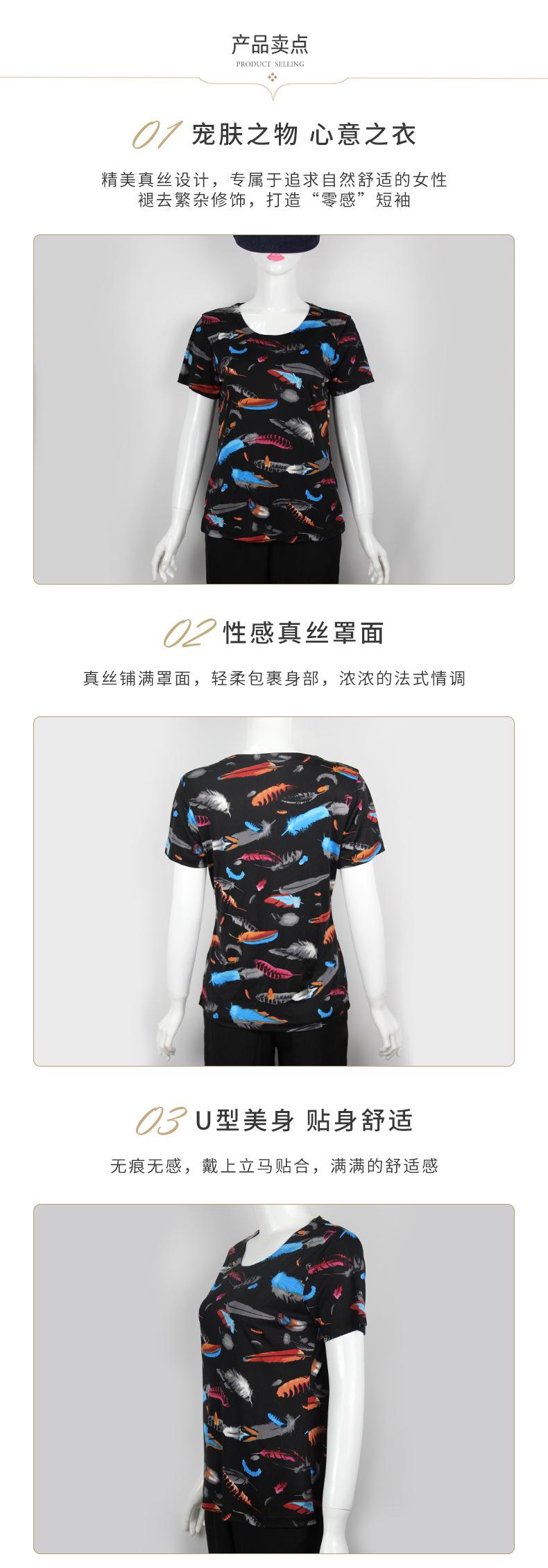 2025 Nueva Camiseta de Verano Fina de Seda de Morera para Mujer de Manga Corta Estampada Cuello Redondo Jersey Top Corto