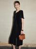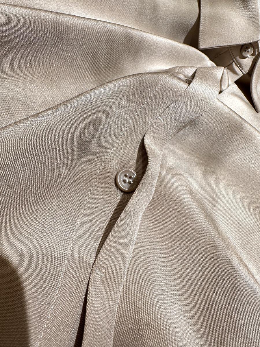 Este vestido de seda está hecho de crepé pesado de 30 momme 100% seda de morera