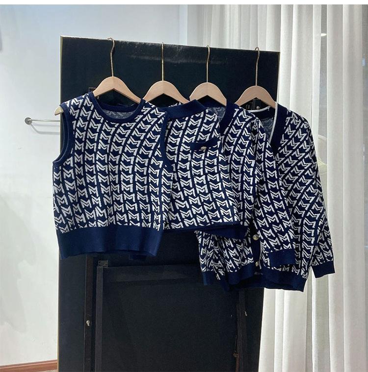 Sistema Legal M 2023 Nuevo Traje de Punto para Mujer Nanyou de Alta Gama para Mujer Verano Estilo Pequeño Fragante Suéter Jacquard de Letras