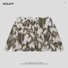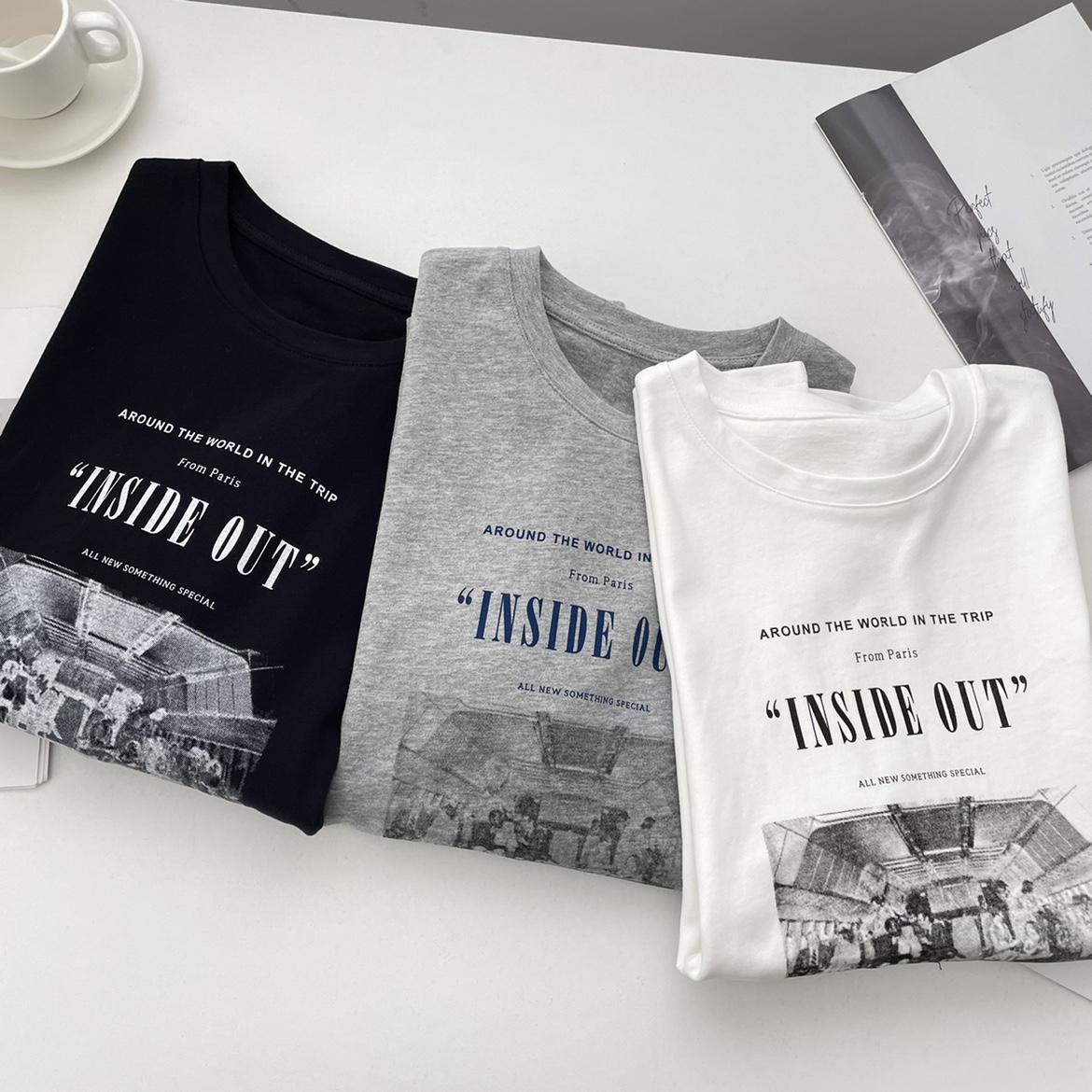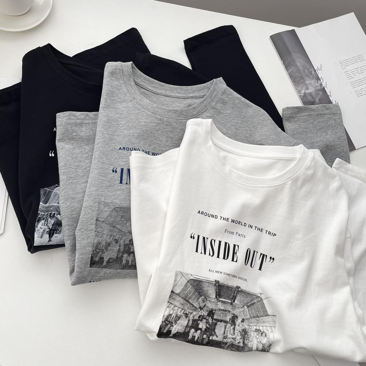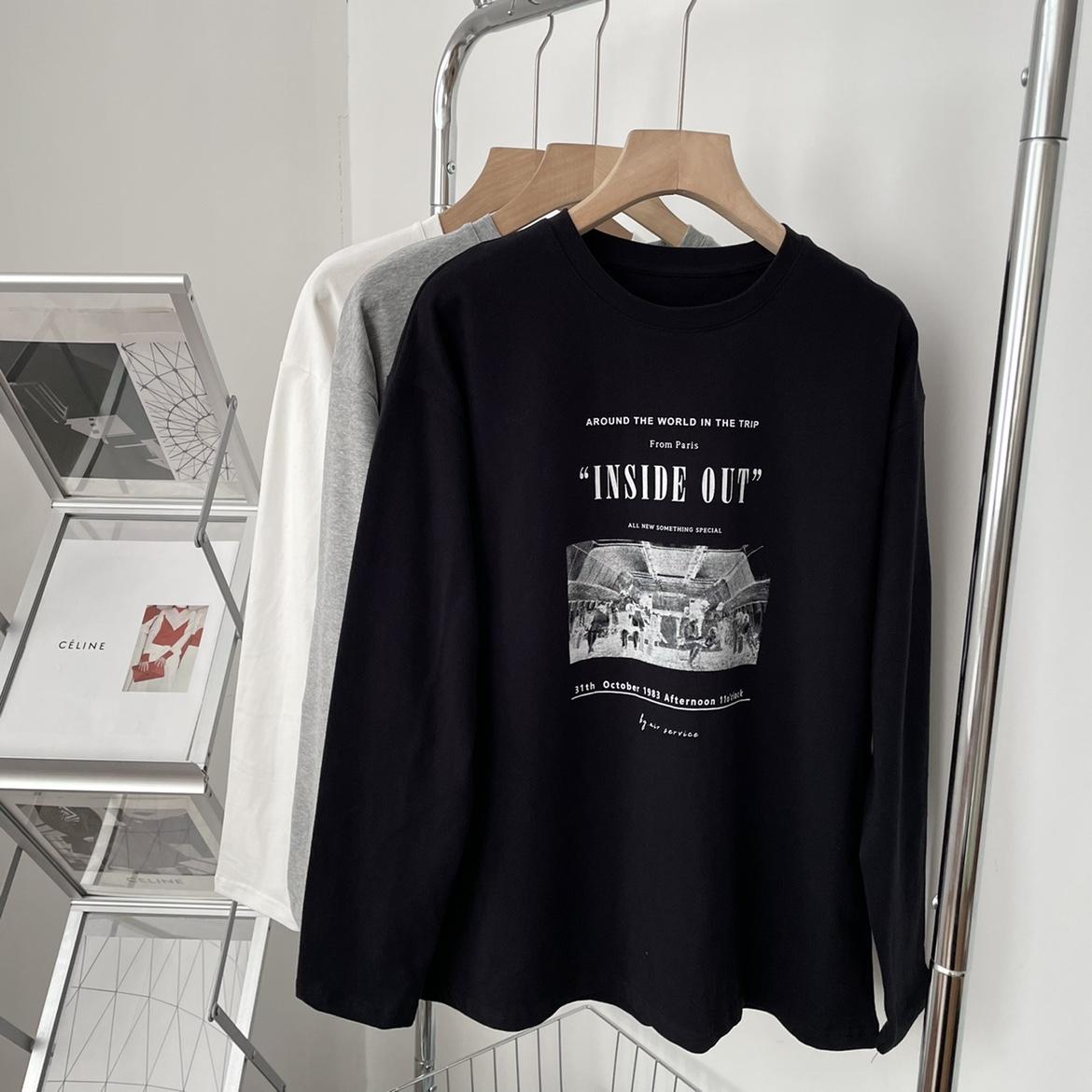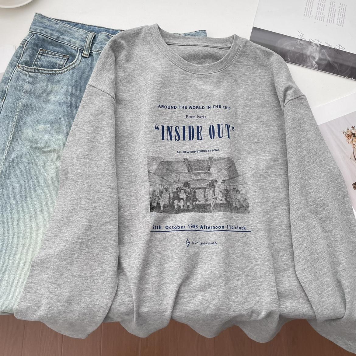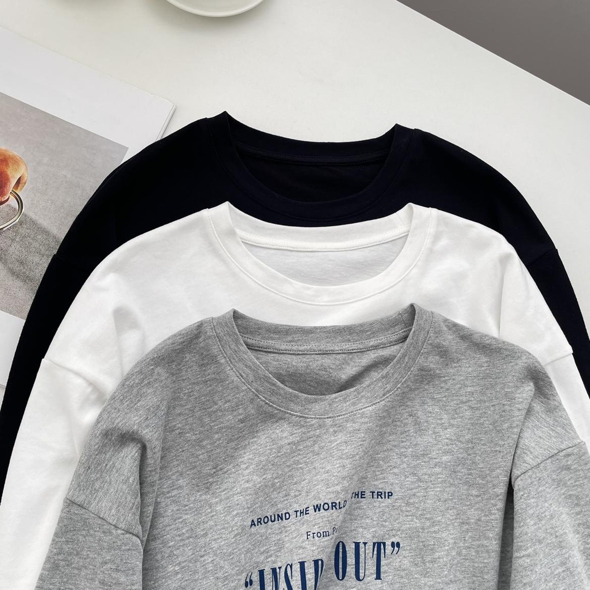 Camiseta de manga larga con estampado artístico, informal, holgada, retro americana, de principios de otoño, versátil, elegante, con cuello redondo y letras en la parte inferior