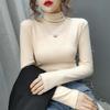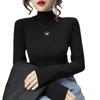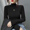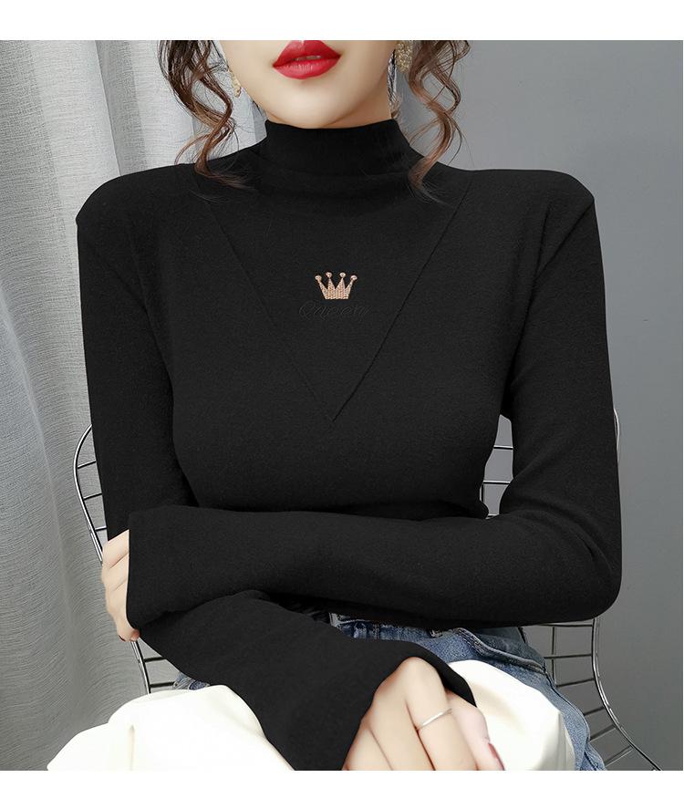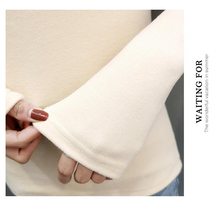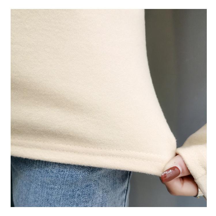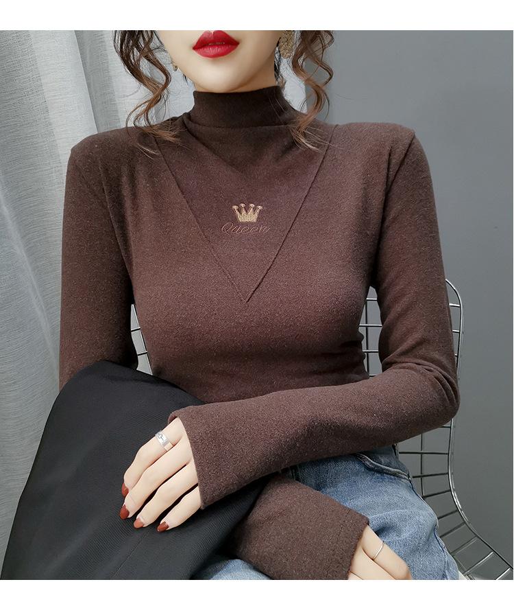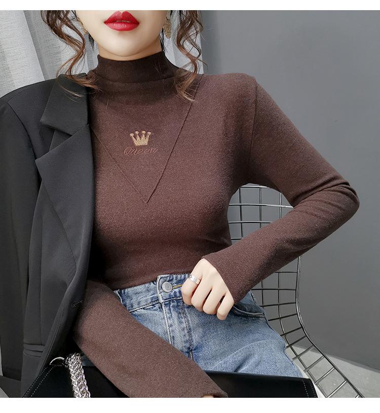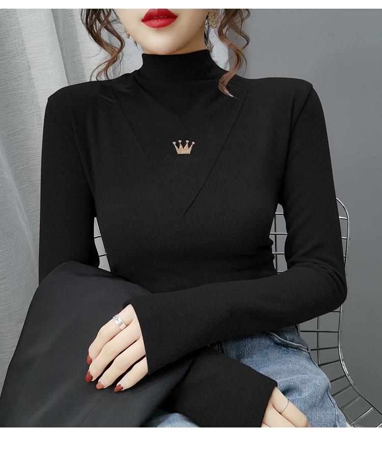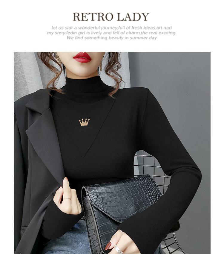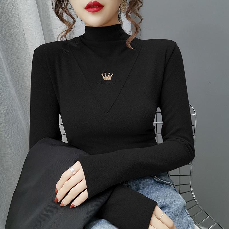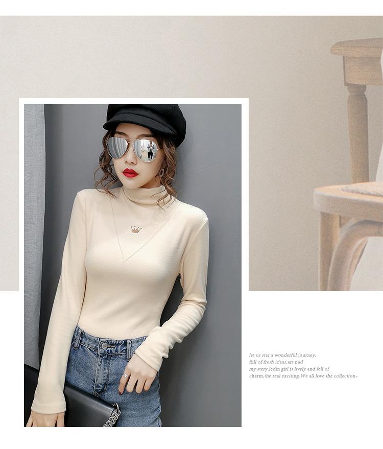 2022 Nuevo Cuello Alto de Manga Larga Bordado Camiseta Base de Felpa de Doble Cara para Mujer, Adecuada para la Moda de Otoño, Invierno y Primavera