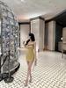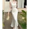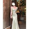 Vestido de fiesta de cumpleaños de alta gama hecho a mano con cuentas y falda de satén con cintura elegante para mujer.