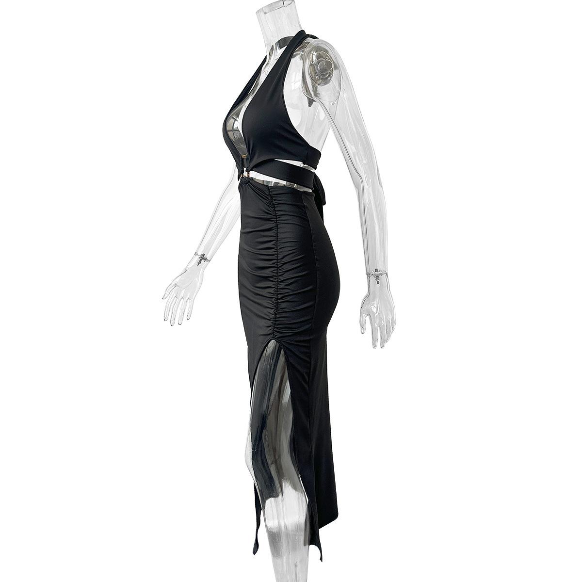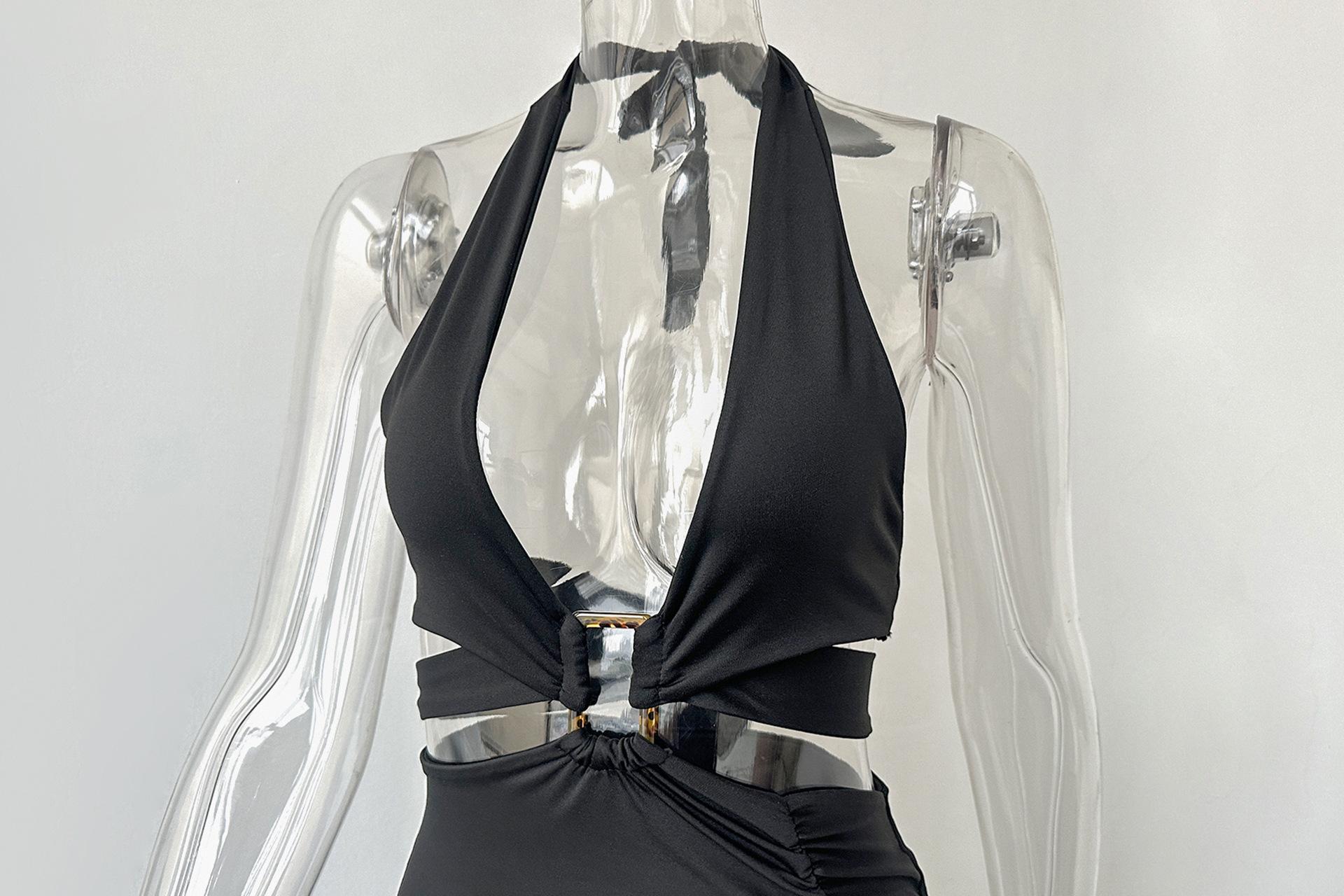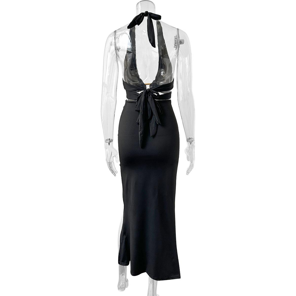 Vestido de mujer de verano 2024 de cuello halter con abertura hueca de venta caliente;
