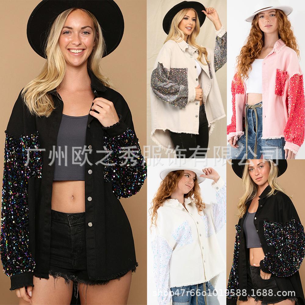 Chaqueta vaquera de manga larga con lentejuelas estilo europeo y americano de primavera nueva transfronteriza, chaqueta cárdigan de longitud media AliExpress, ropa de mujer¥78Compre ya |