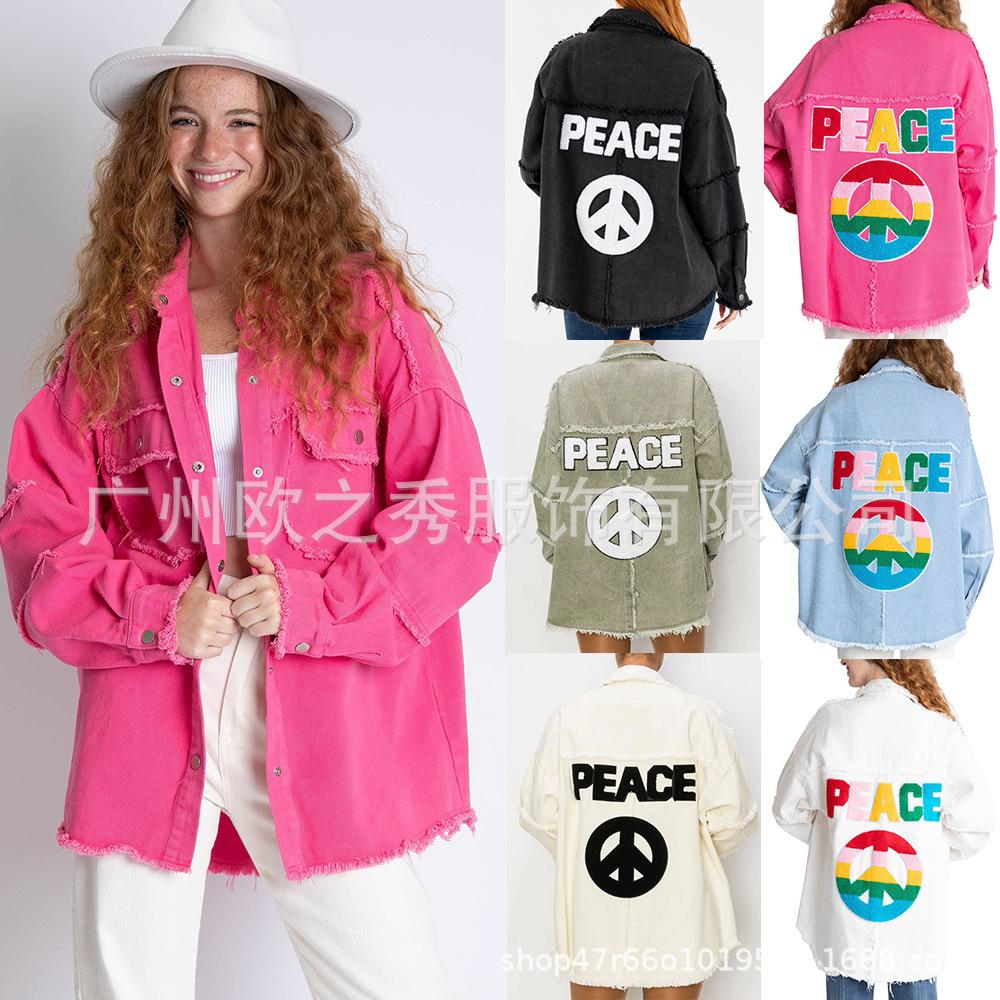 Chaqueta retro multicolor europea y americana de longitud media nueva rasgada holgada mezclilla camisa chaqueta tops mujer Amazon transfronterizo¥56Compre ya |