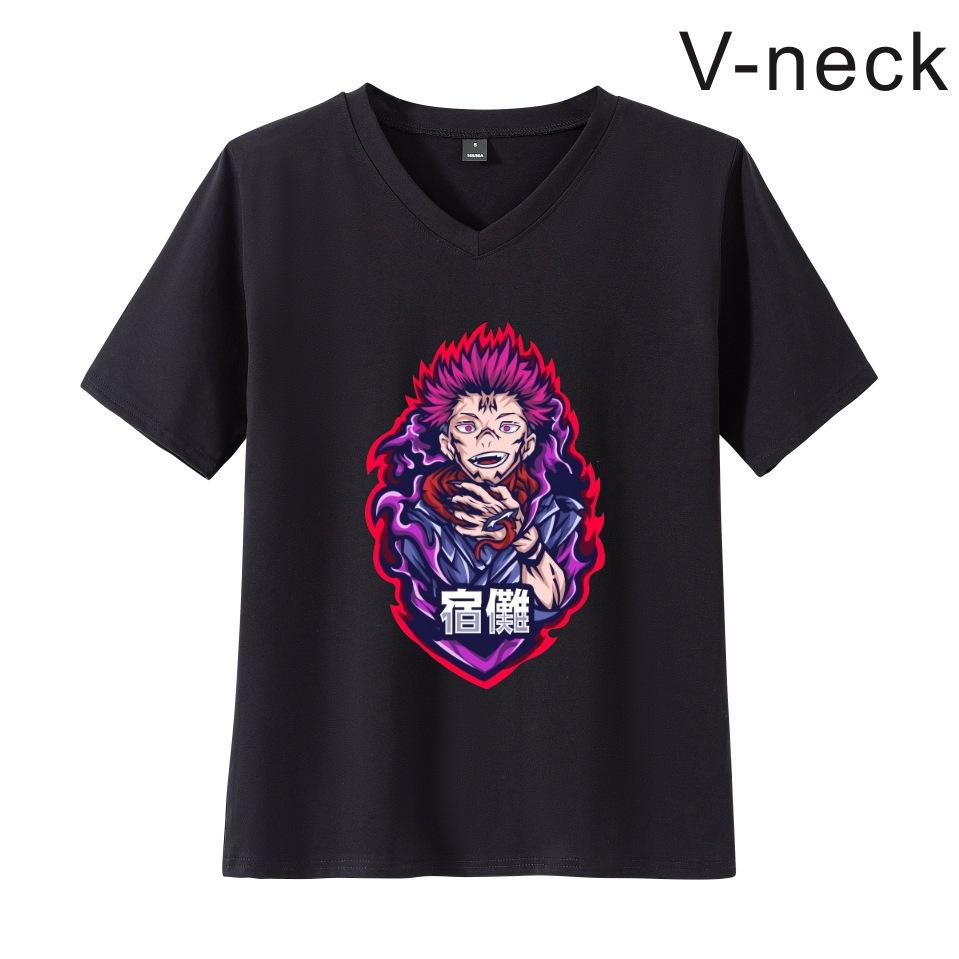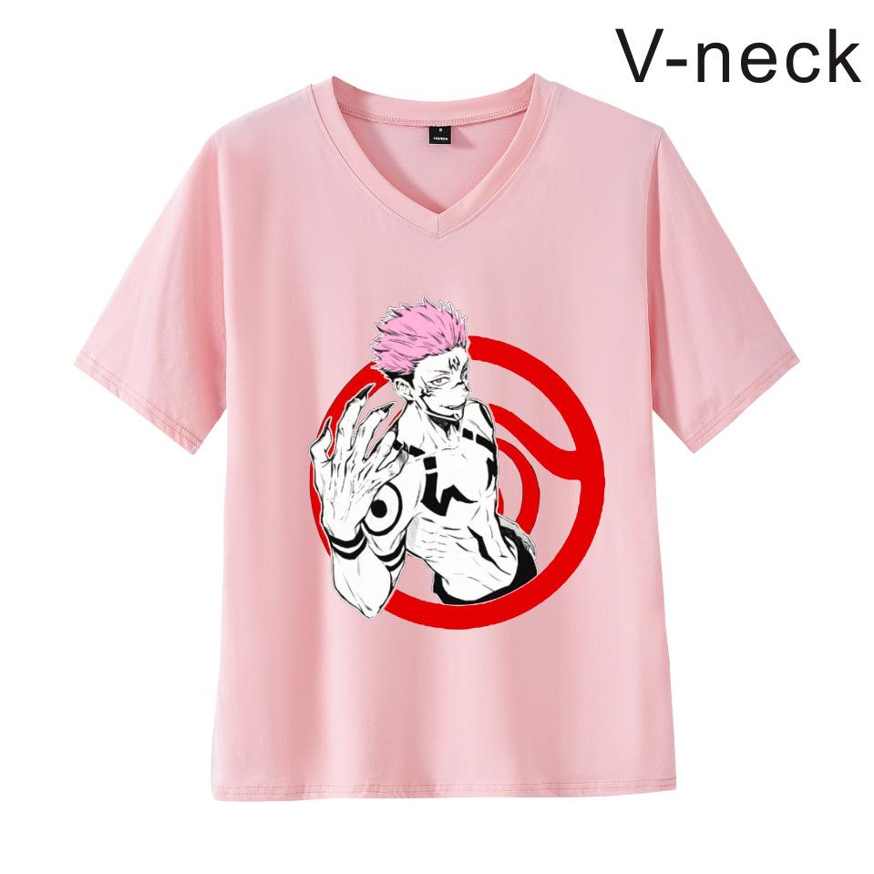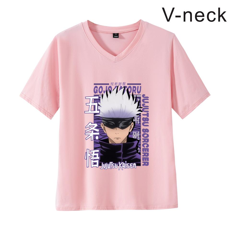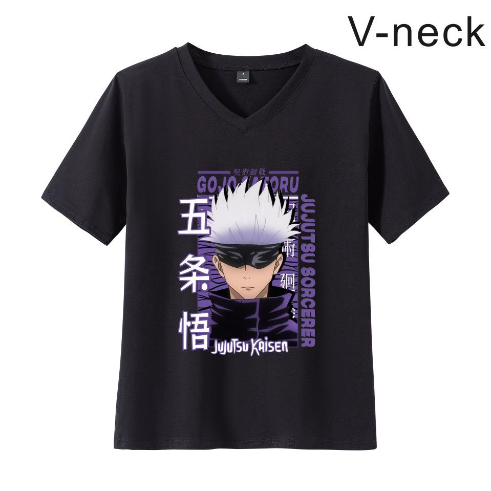 Camiseta informal de verano para parejas con cuello en V y manga corta con estampado de animación de Jujutsu Kaisen de batalla de hechizos transfronterizos