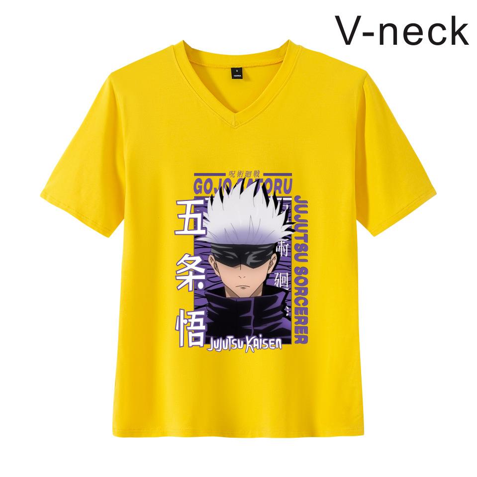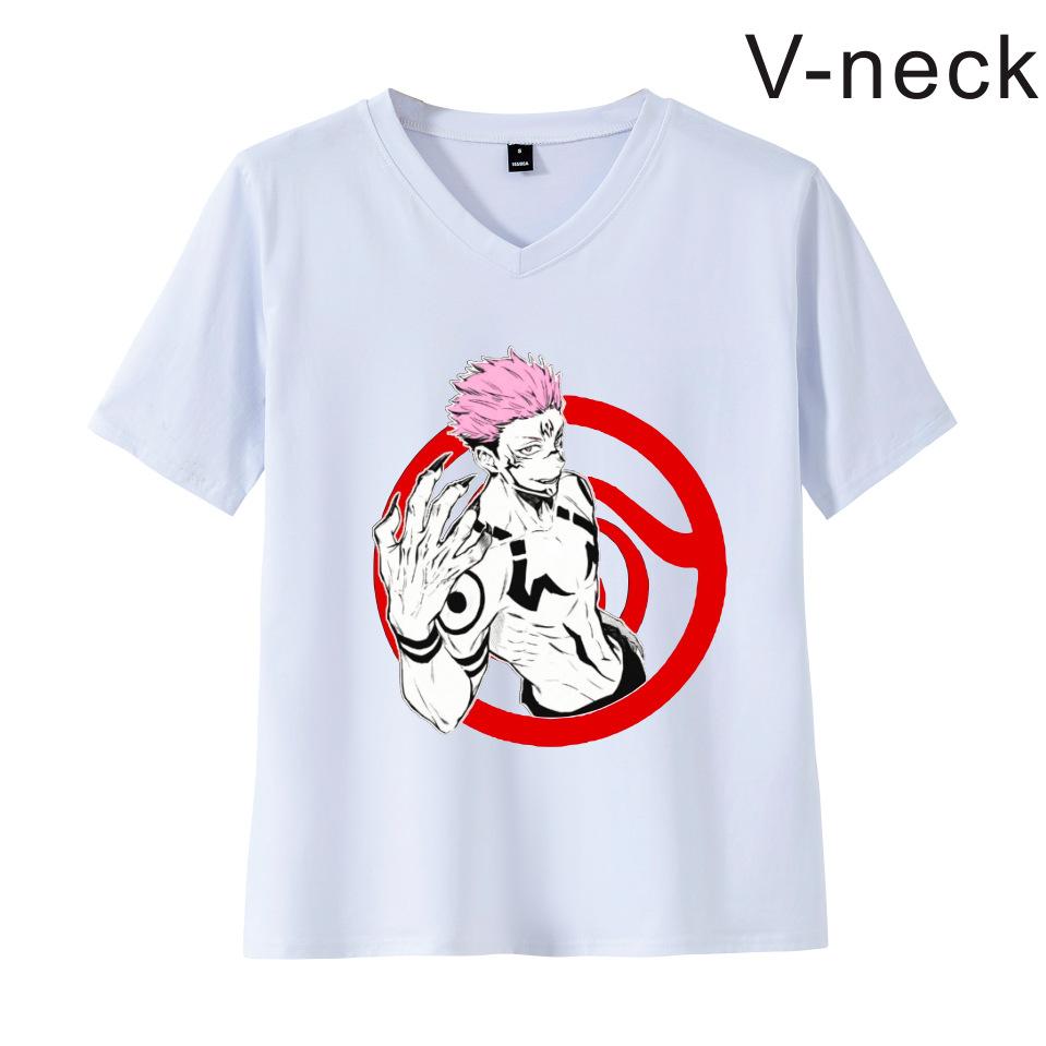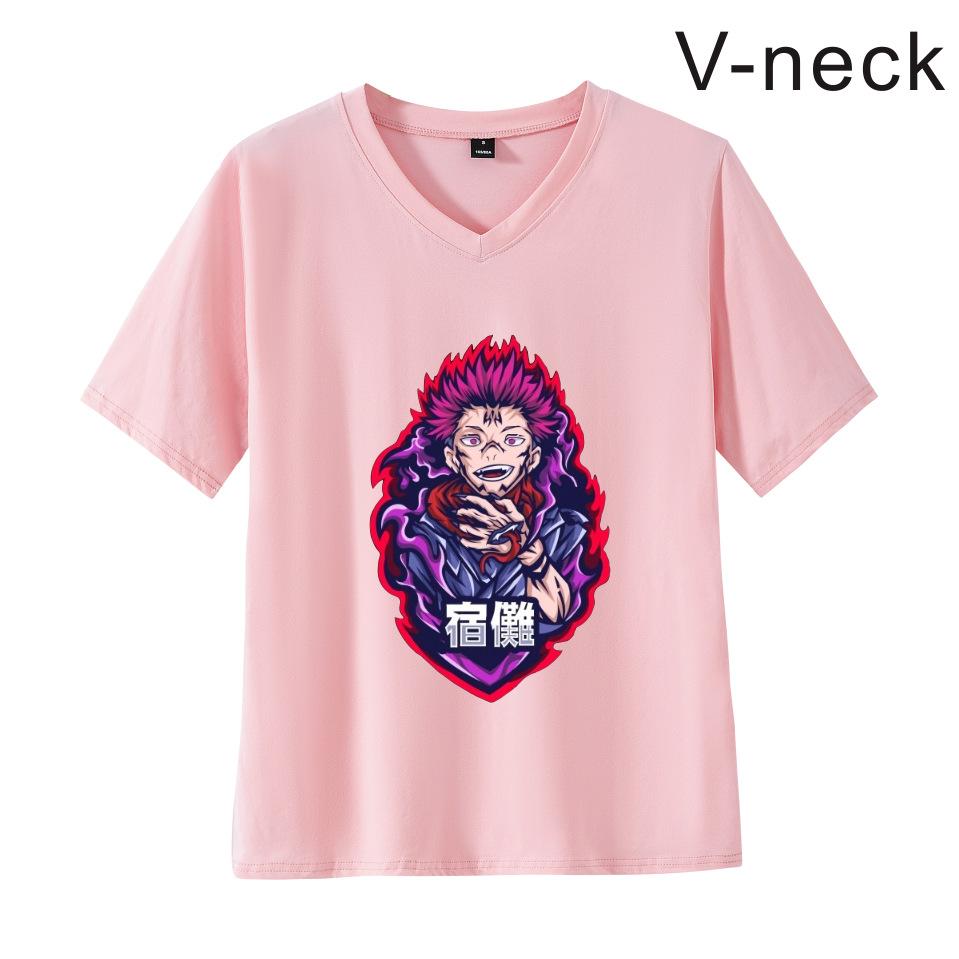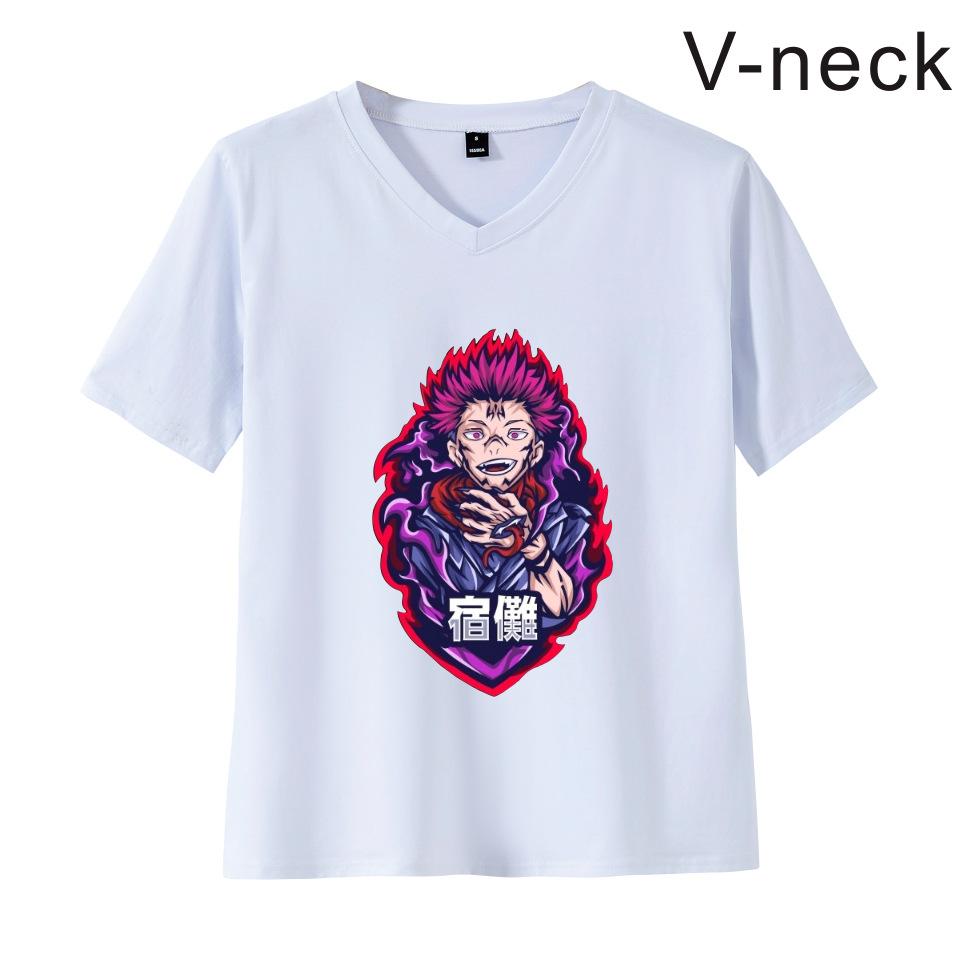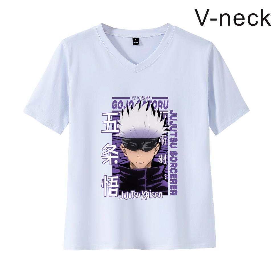 Camiseta informal de verano para parejas con cuello en V y manga corta con estampado de animación de Jujutsu Kaisen de batalla de hechizos transfronterizos