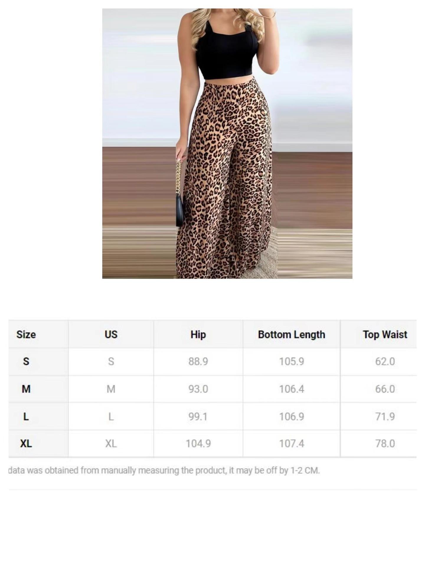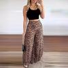Conjunto de chaleco elegante con estampado de leopardo, cintura alta y pantalones anchos para mujer, primavera y verano 2024