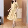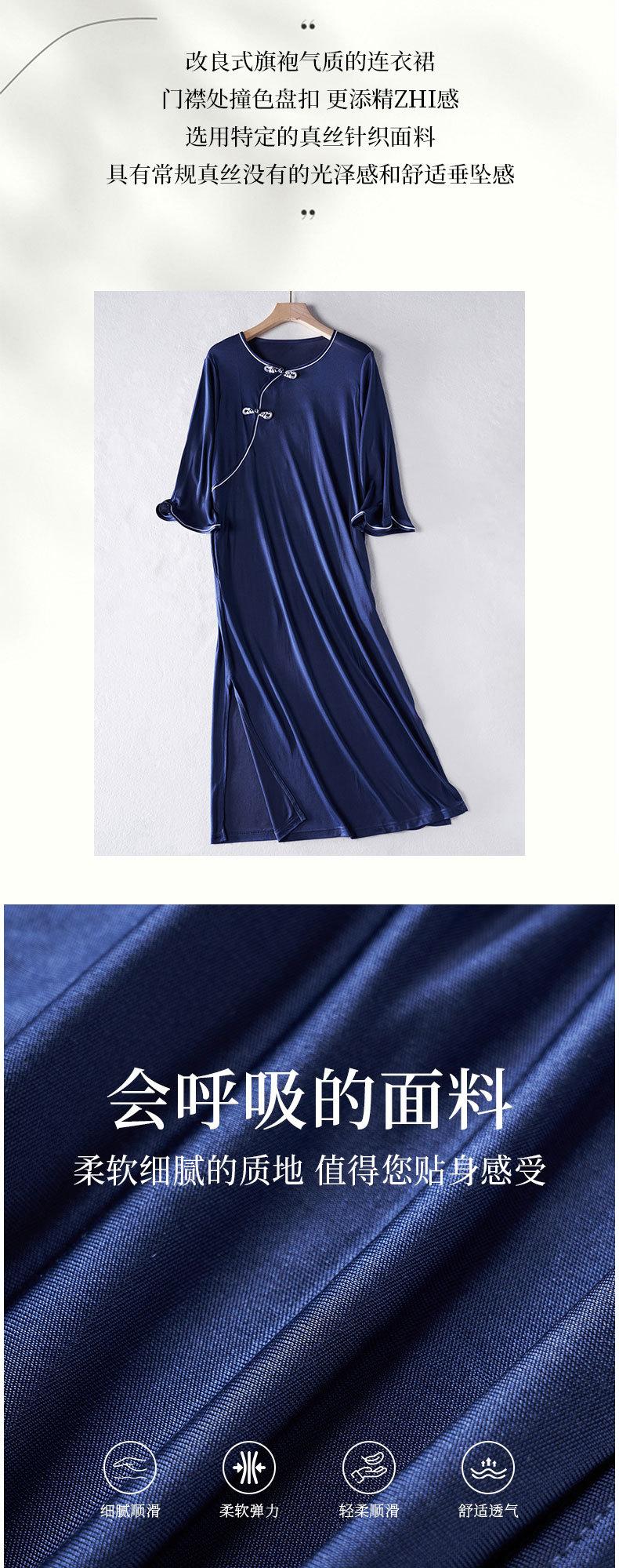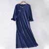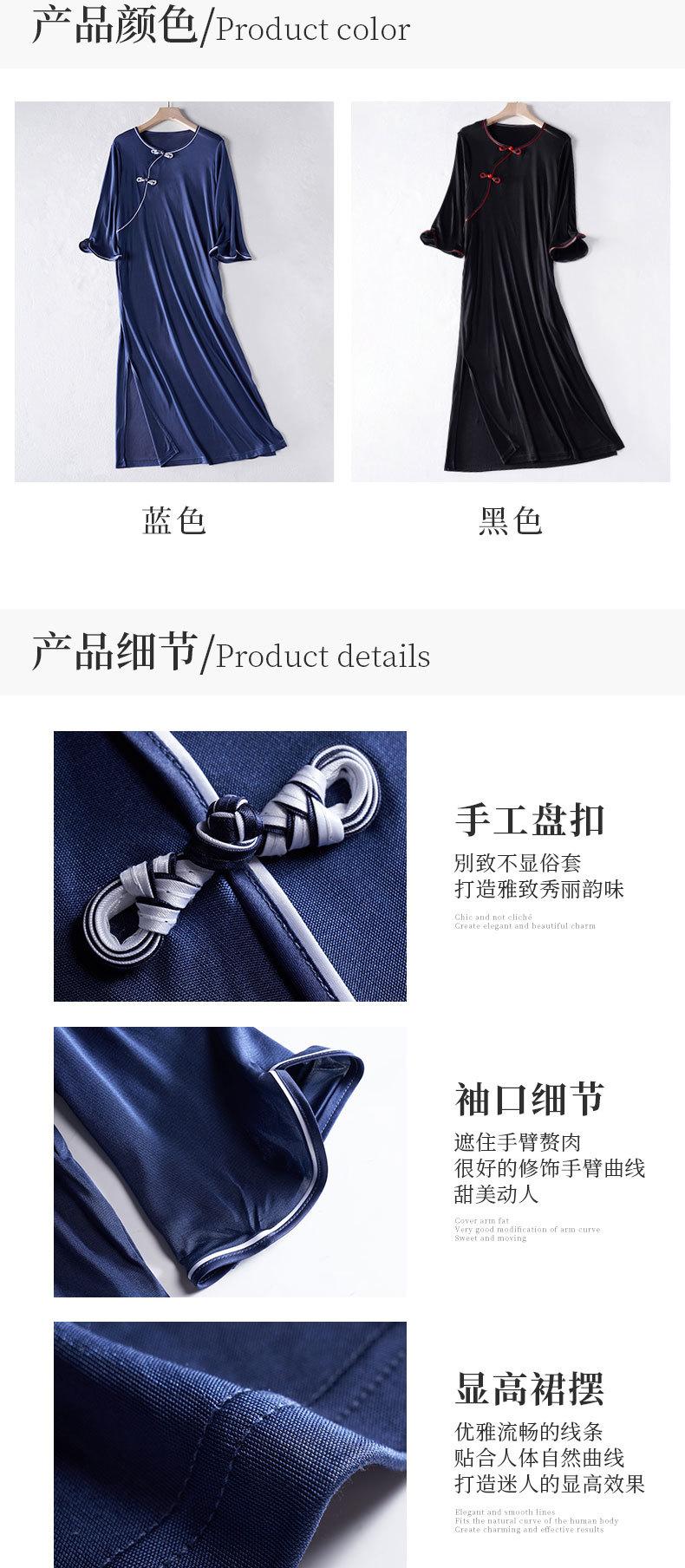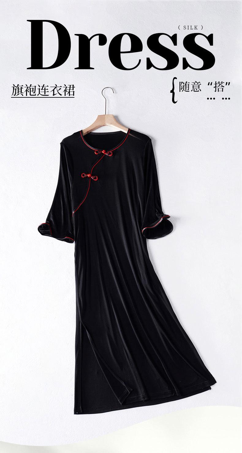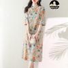 Vestido de Seda de Estilo Nacional Cuidadosamente Seleccionado para Mujer, Verano Elegante, Cuello Redondo, Nuevo Cheongsam Chinoiserie, Falda Larga de Seda de Morera de Talla Grande Holgada