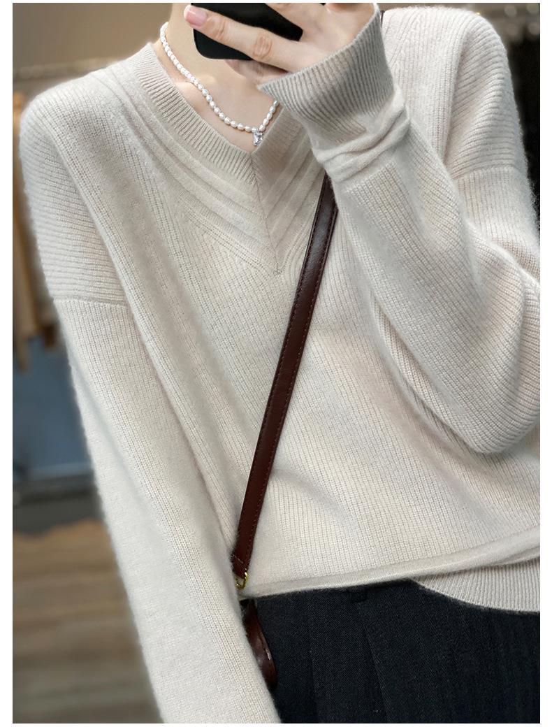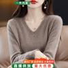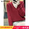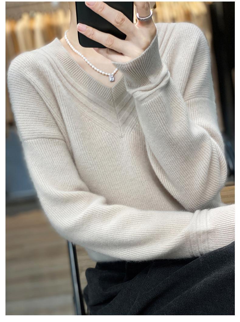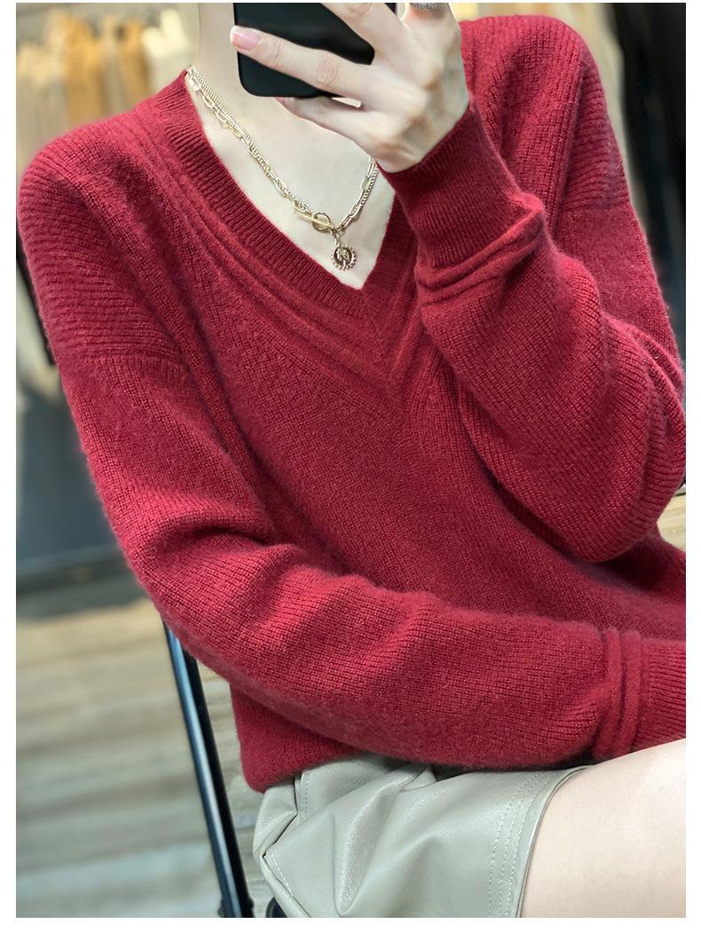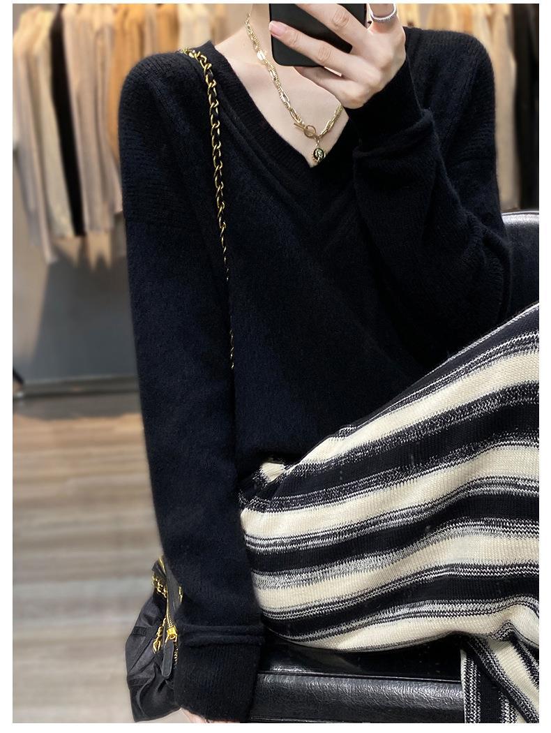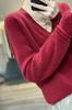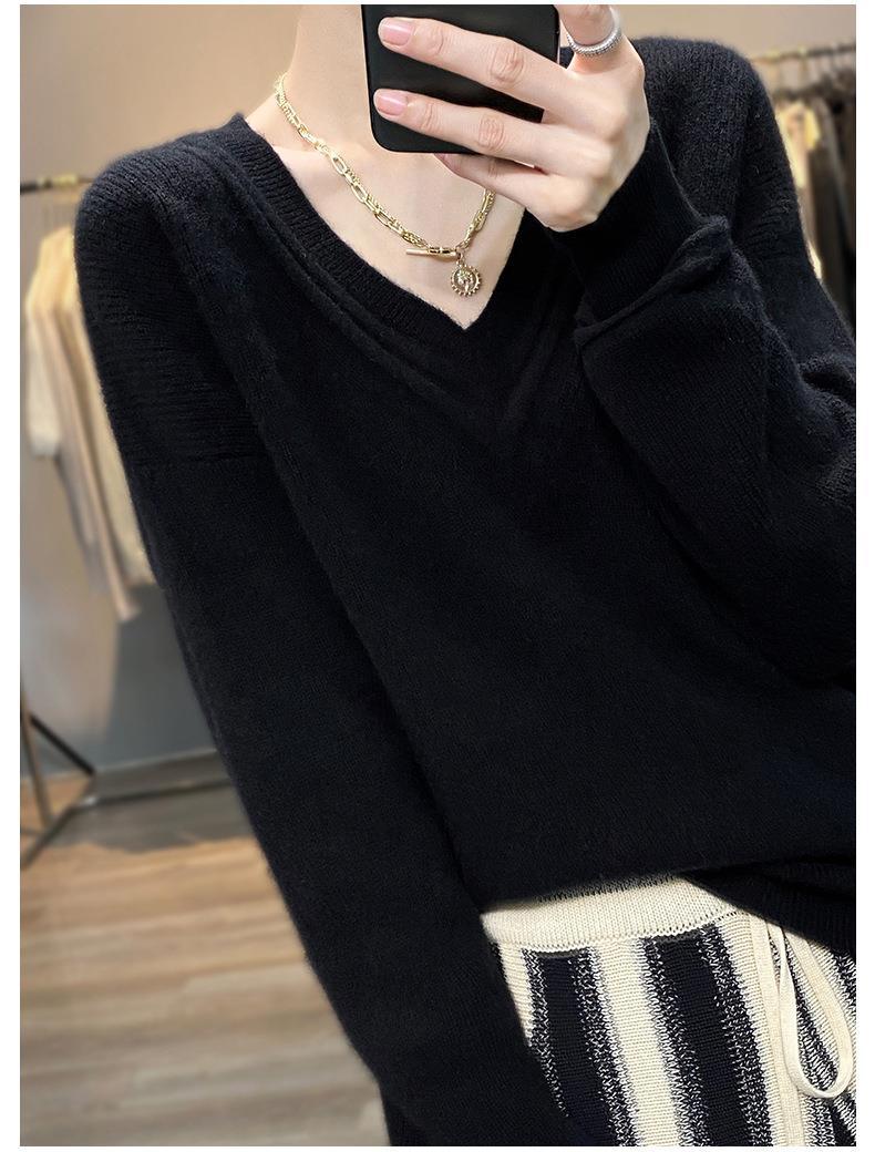 Otoño e invierno 2022 Nuevo jersey de punto de lana pura con cuello en V y manga larga, moda color sólido comodín, camisa básica de lana