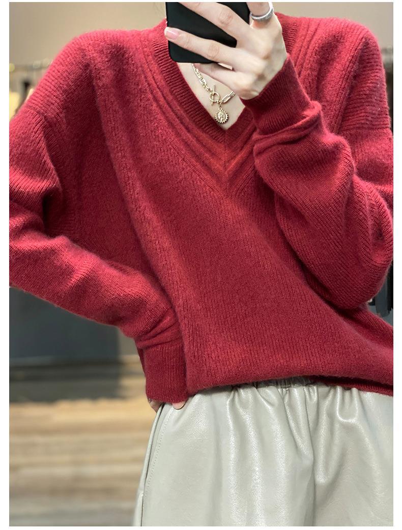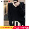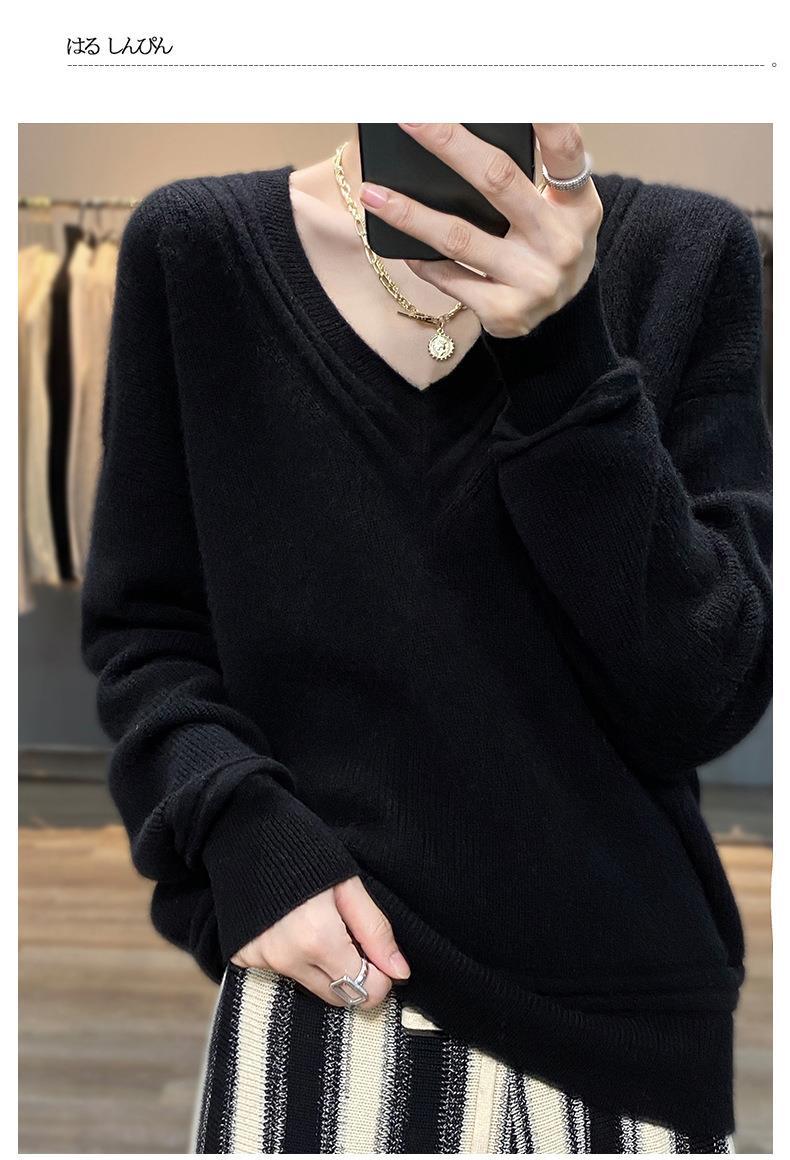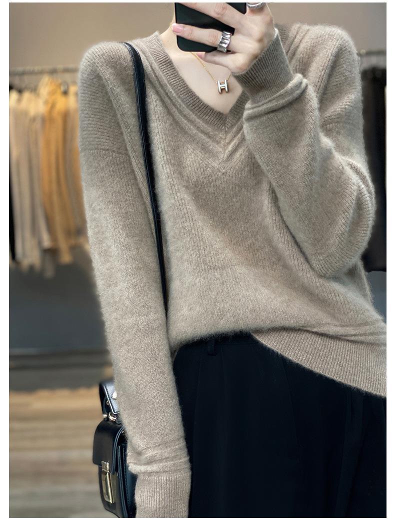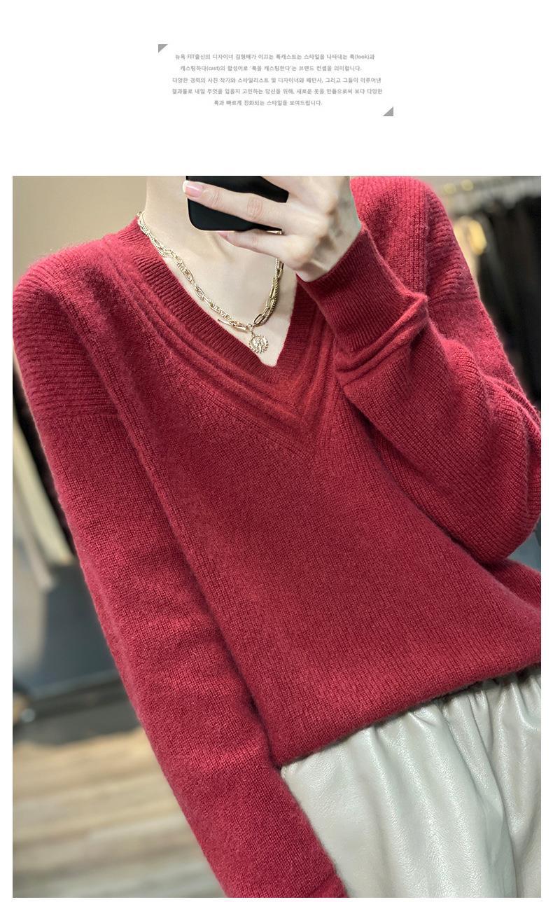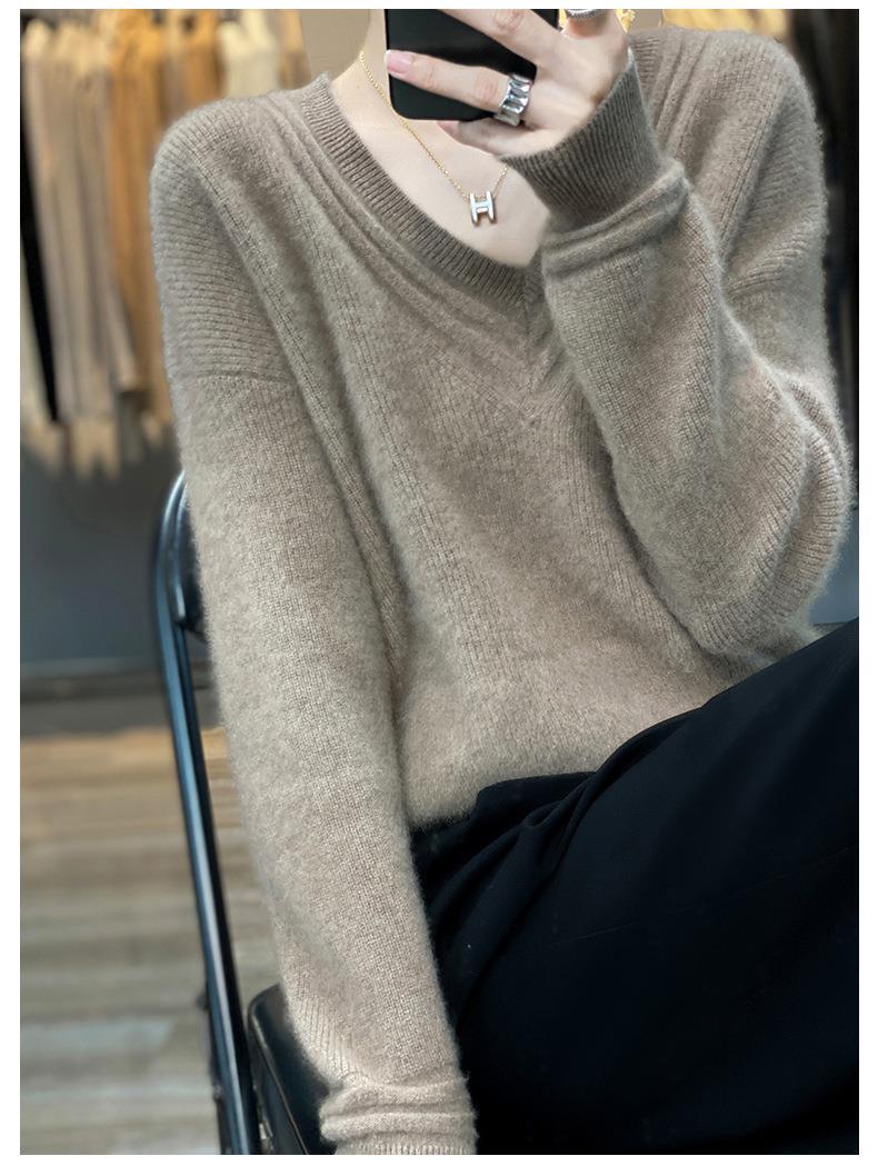 Otoño e invierno 2022 Nuevo jersey de punto de lana pura con cuello en V y manga larga, moda color sólido comodín, camisa básica de lana