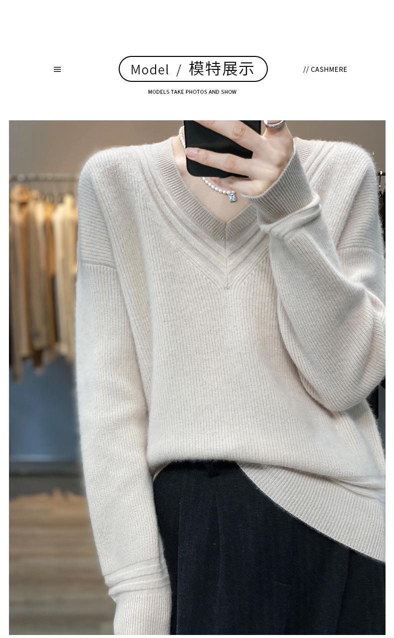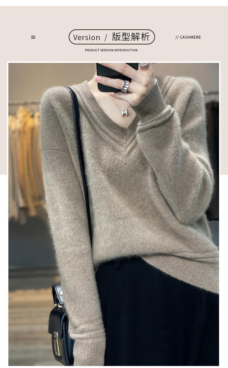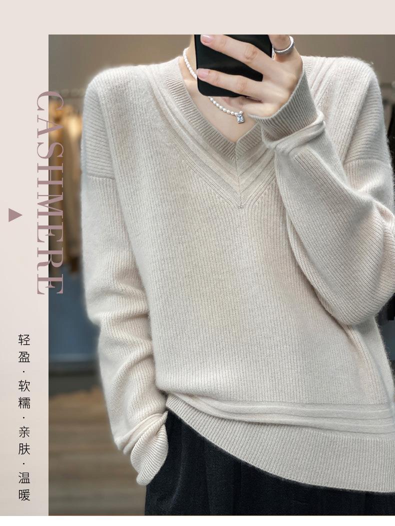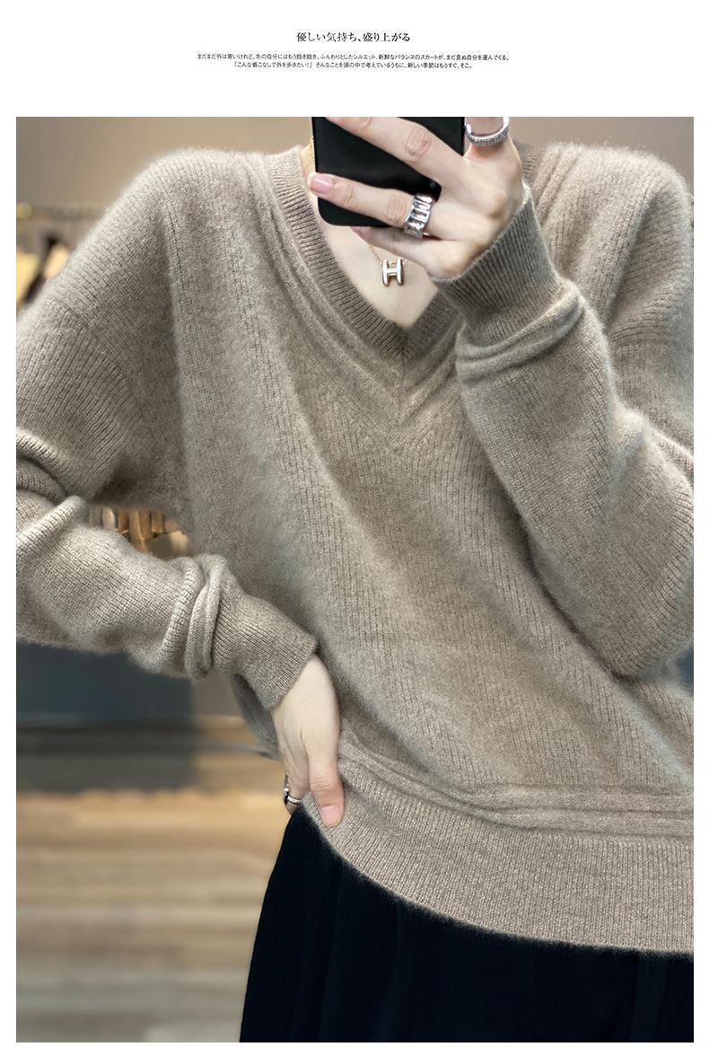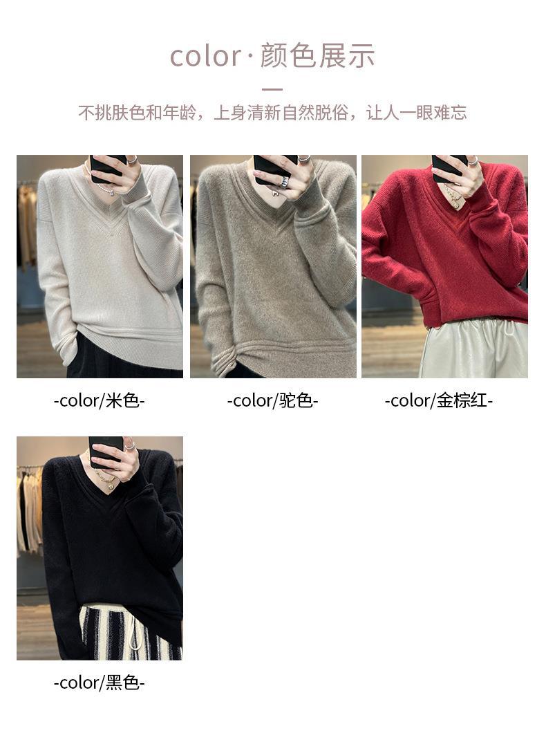 Otoño e invierno 2022 Nuevo jersey de punto de lana pura con cuello en V y manga larga, moda color sólido comodín, camisa básica de lana