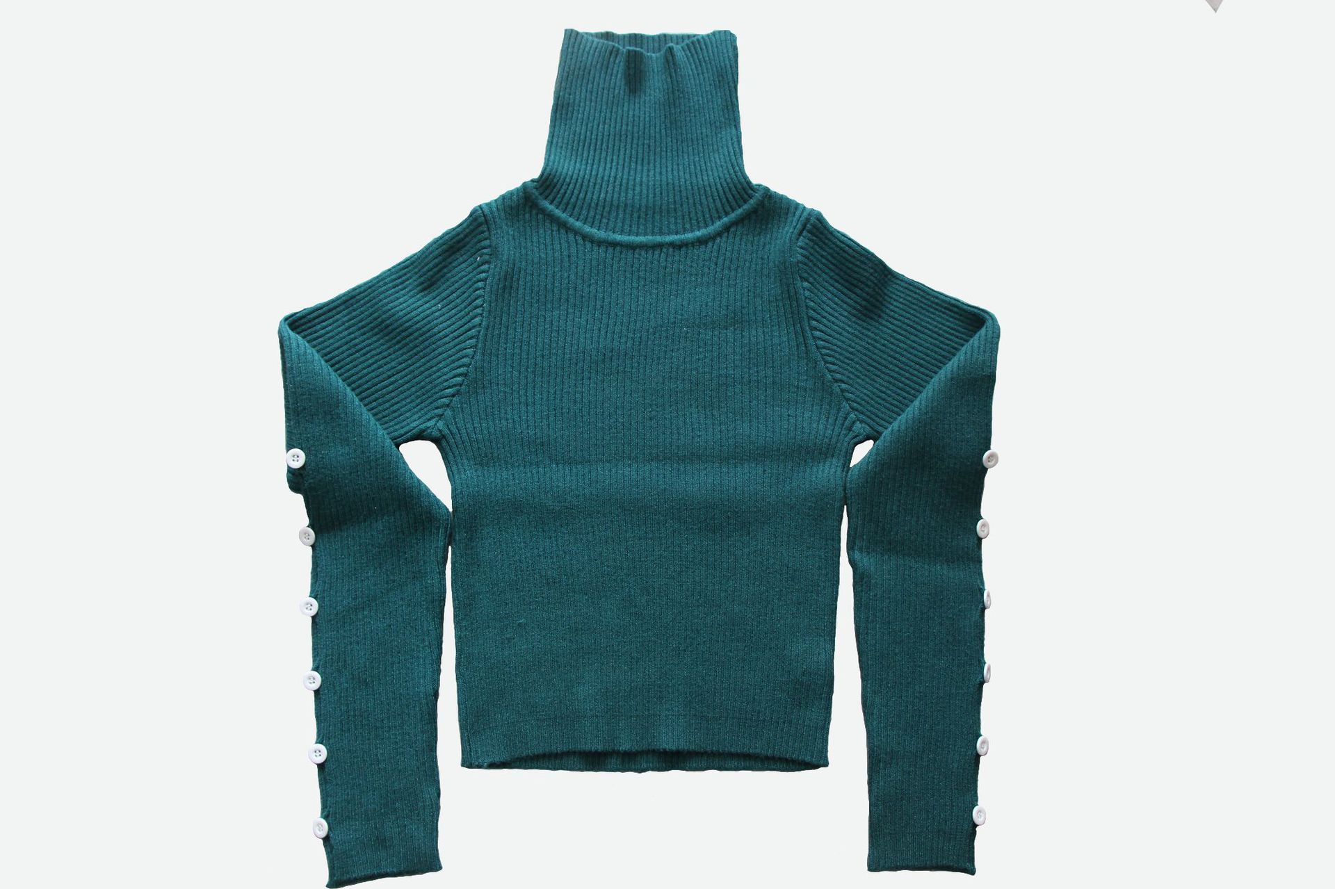 Suéter en stock Suéter personalizado de comercio exterior transfronterizo Europa y América Suéter con botones de primavera y otoño Suéter ajustado de cuello alto medio de Amazon