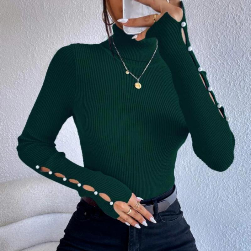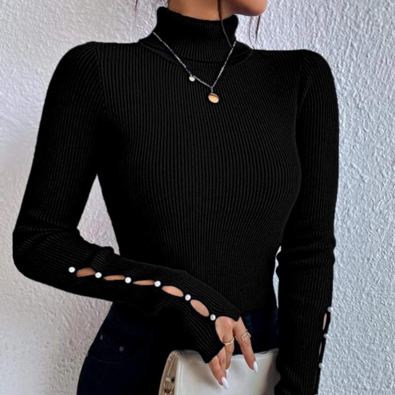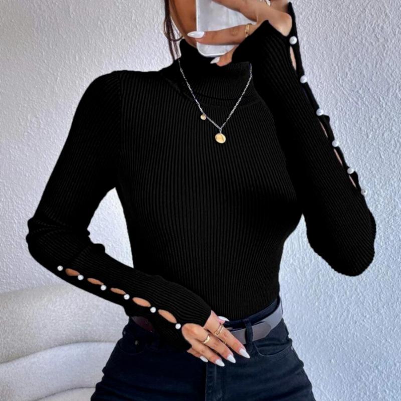 Suéter de mujer de cuello alto con diseño hueco de otoño e invierno con chica sexy de Amazon de Europa y América de comercio exterior transfronterizo