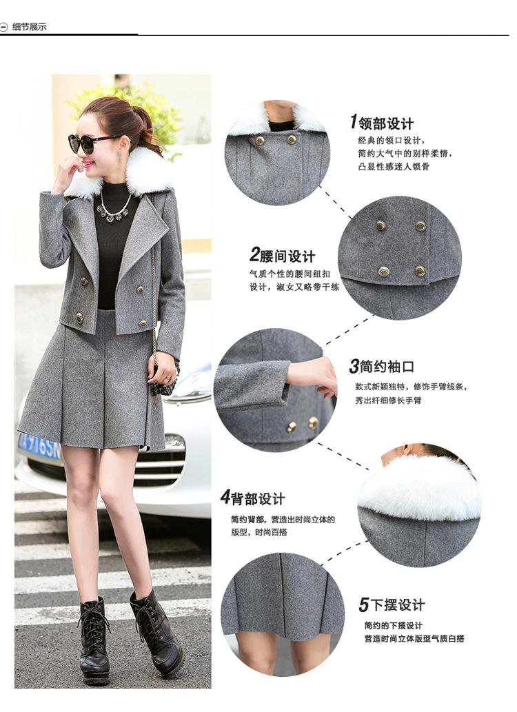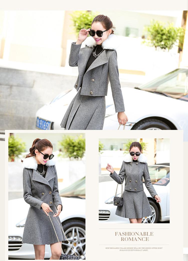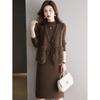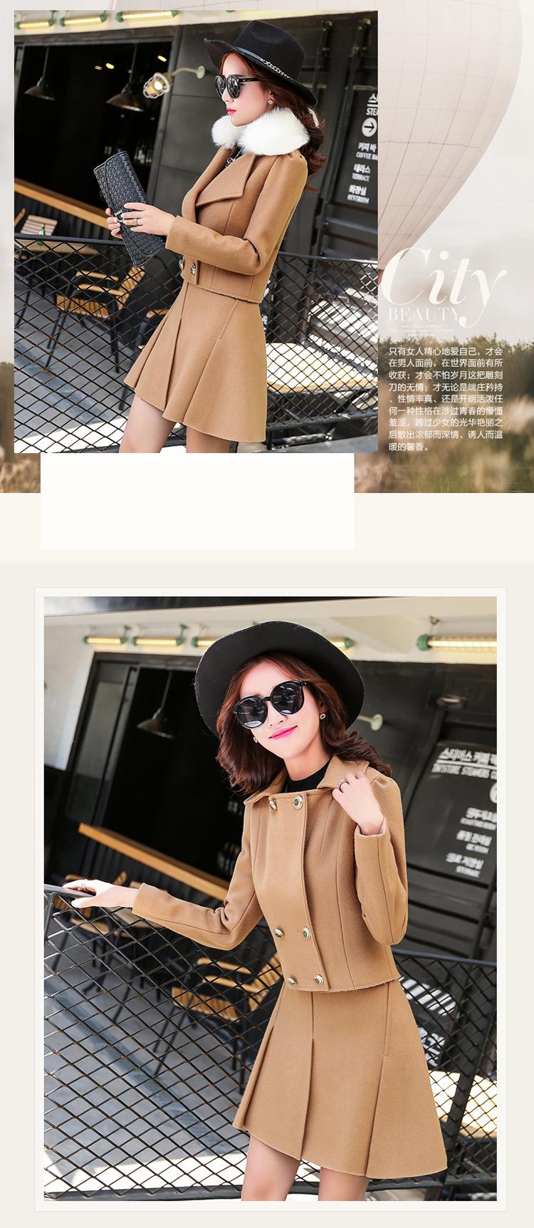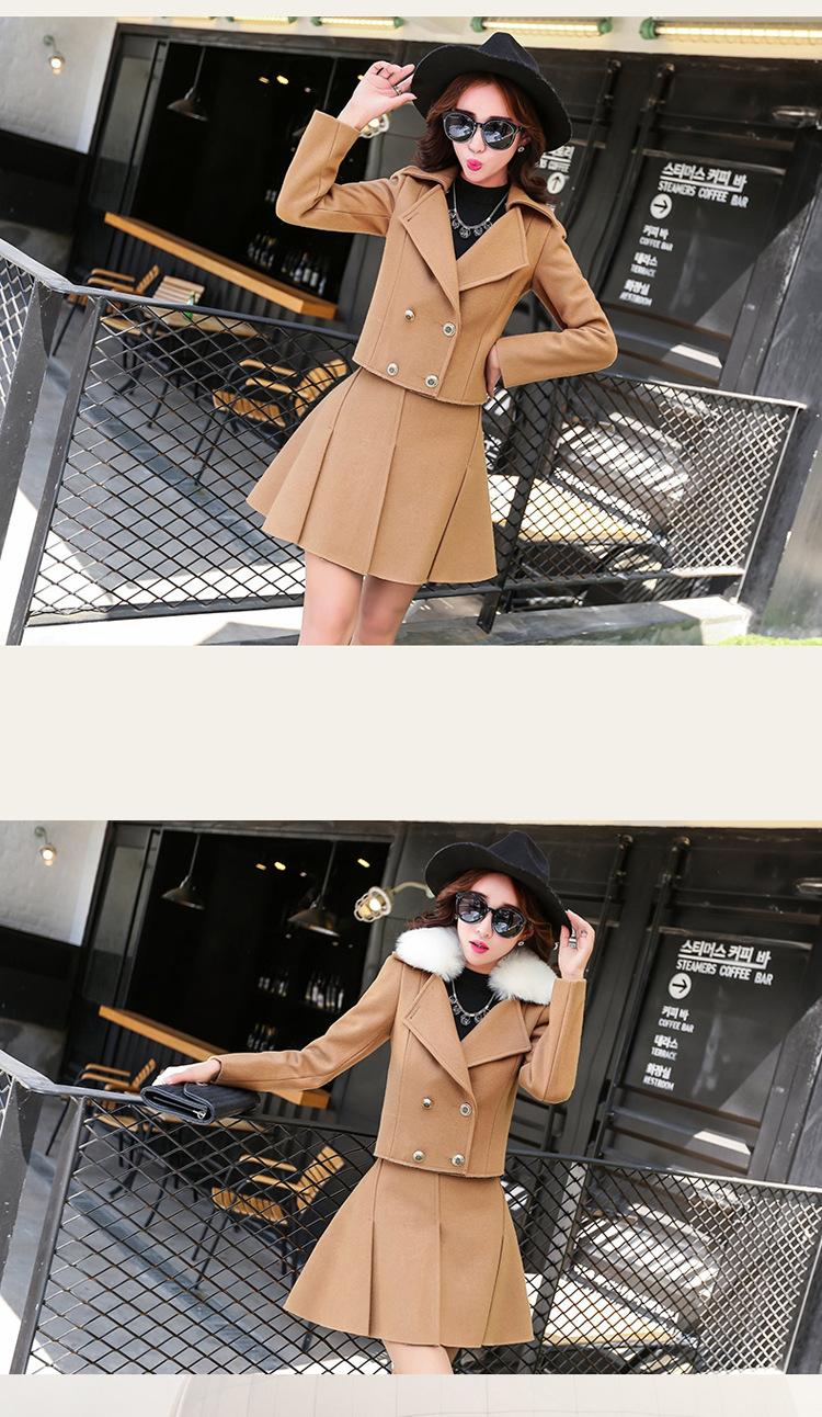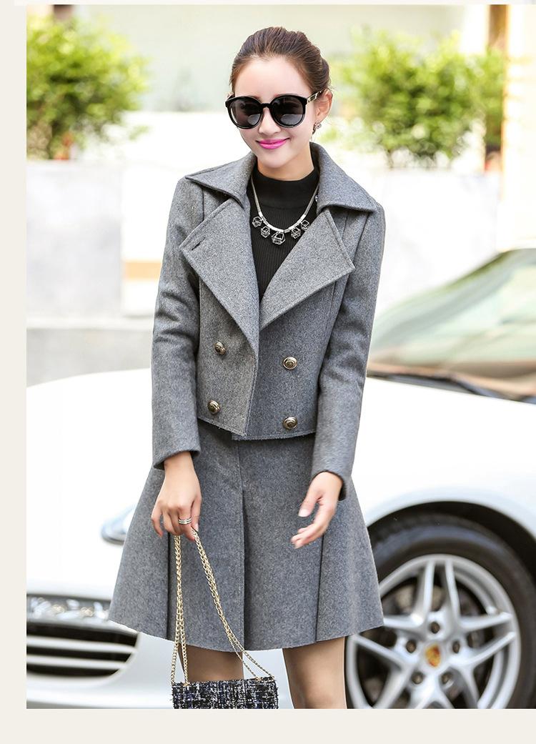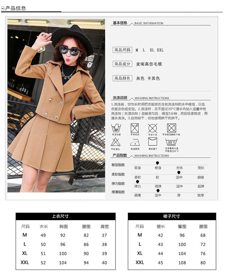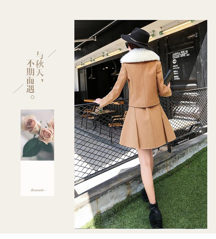 Conjunto de dos piezas de primavera y otoño con leche de papaya, abrigo de lana ajustado elegante y a la moda coreana, traje de falda de lana para mujer.