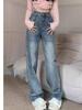 Otoño Nuevos Jeans de Mujer Cintura Alta Estilo Bf Europeos y Americanos Sueltos Rectos Pierna Ancha Talla Grande Jeans de Mujer