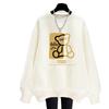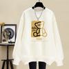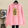 Suéter de algodón de cuello redondo para mujer, forro polar grueso, primavera, otoño e invierno, abrigo tipo jersey holgado informal de alta calidad que reduce la edad.