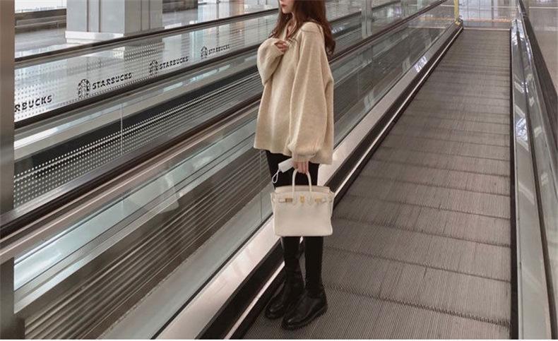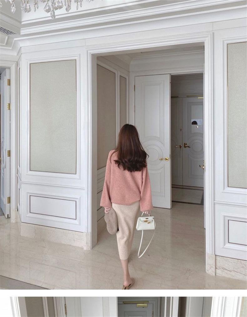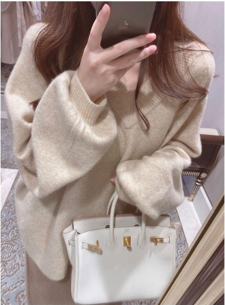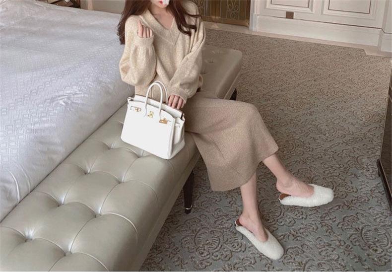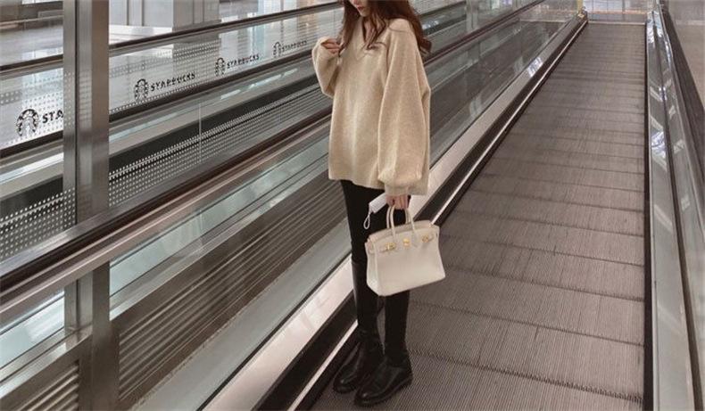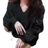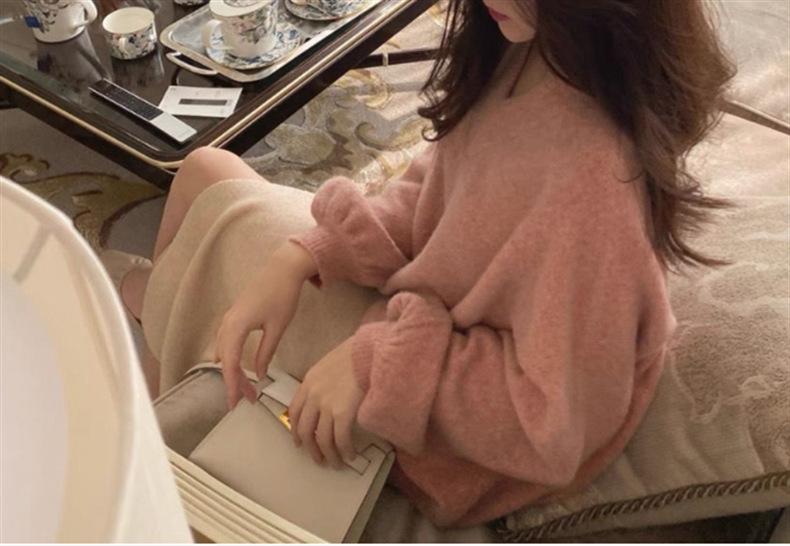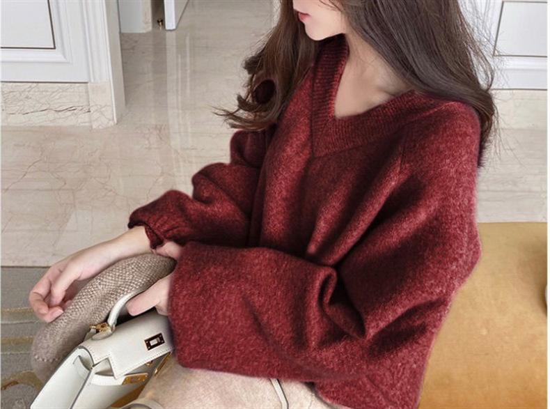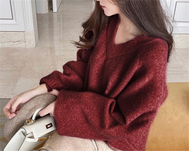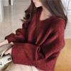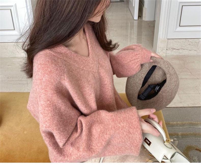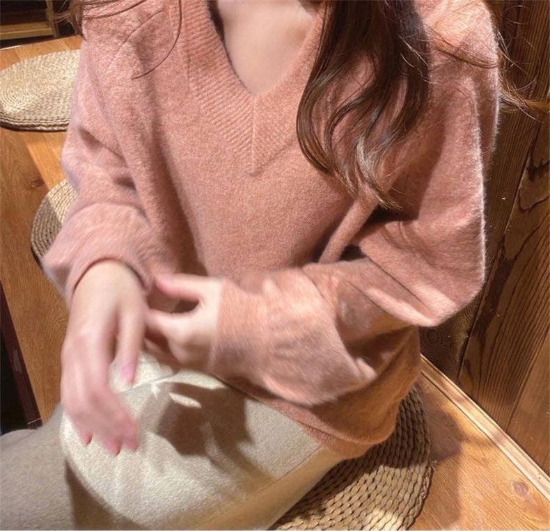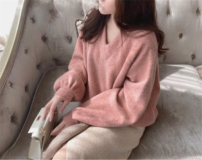 Tejido de Punto de Terciopelo Suave con Cuello en V para Mujer 2024 Nuevo Otoño e Invierno Estilo K Suelto Imitación Cachemira Manga Farol Suéter Tejido de Punto Básico para Mujer