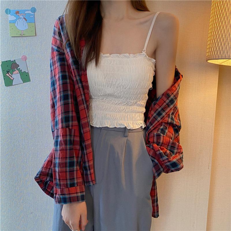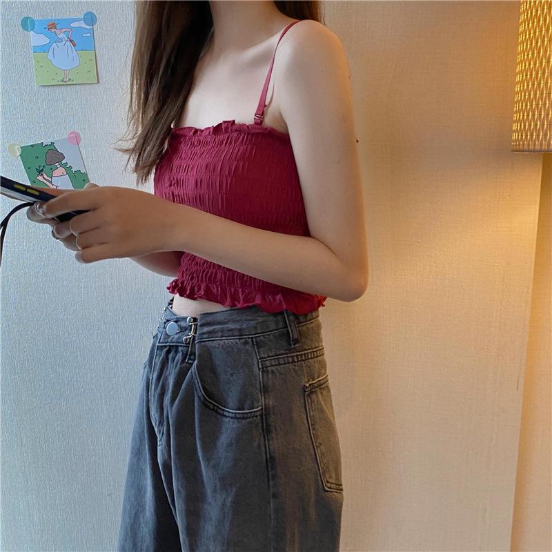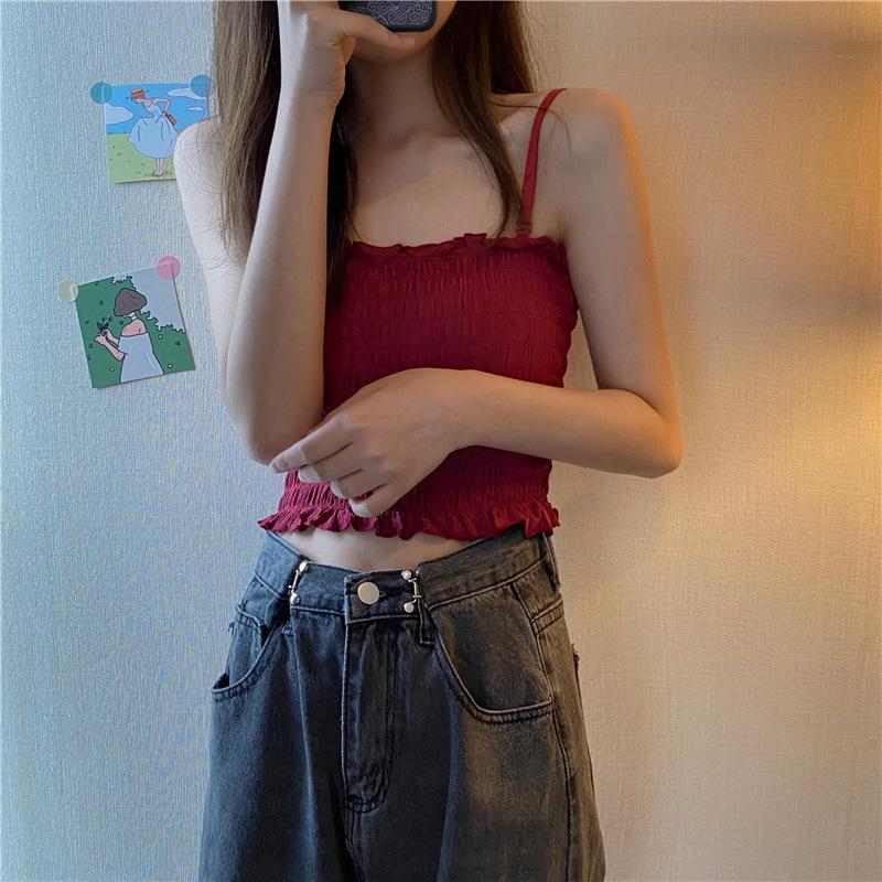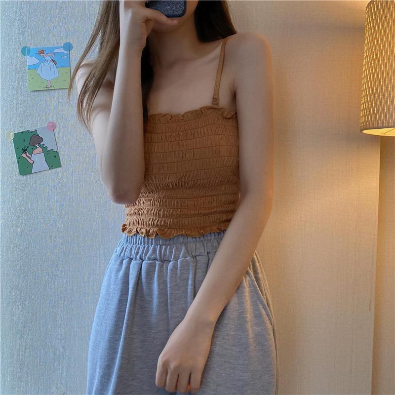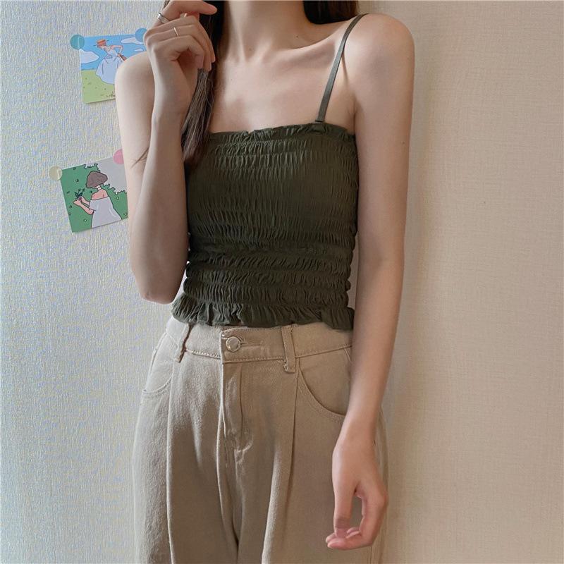 Estilo extranjero Plisado Hermoso Espalda Descubierta Tirantes Chaleco Cinturón Almohadilla para el Pecho Verano Sin Tirantes Camiseta Base Top Ropa Exterior Envoltura de Pecho Ropa Interior Estudiante Mujeres