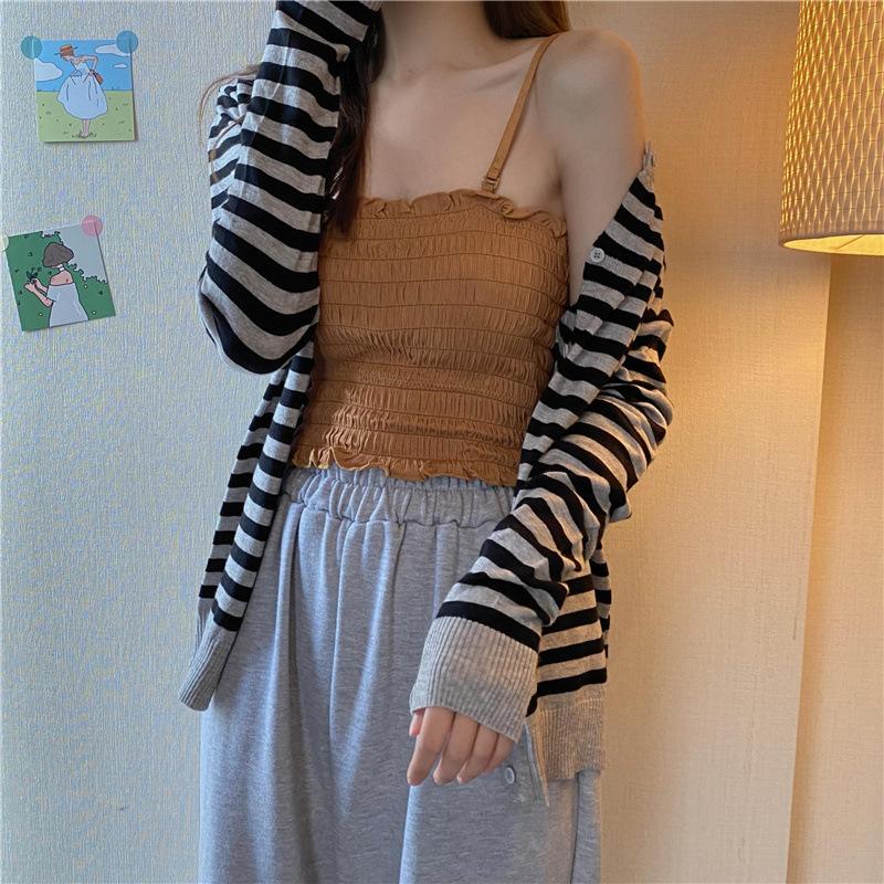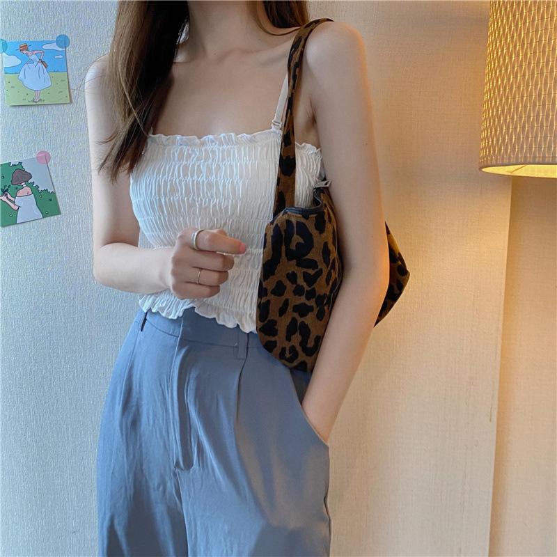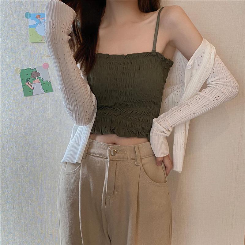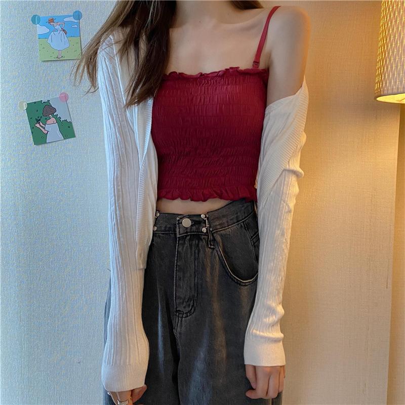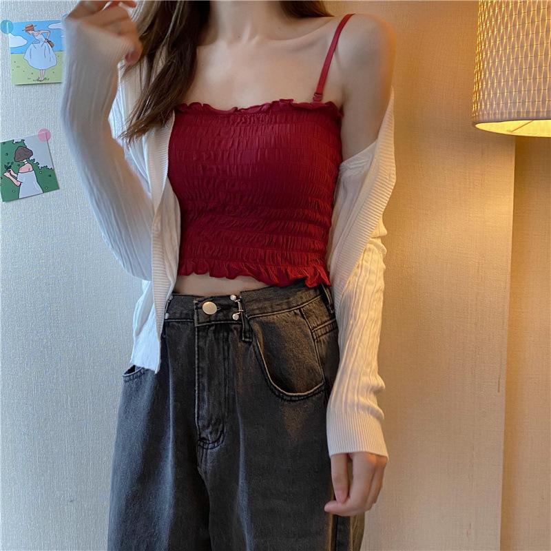 Estilo extranjero Plisado Hermoso Espalda Descubierta Tirantes Chaleco Cinturón Almohadilla para el Pecho Verano Sin Tirantes Camiseta Base Top Ropa Exterior Envoltura de Pecho Ropa Interior Estudiante Mujeres
