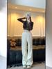 Pantalones Rectos Slim para Mujer 2024 Nuevo Trendy Ins Cintura Alta Drapeados Casual Moda Tejidos Pierna Ancha Engrosados