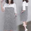 Vestido Rayado de Verano para Mujer Nuevo Estilo Coreano Manga Corta Cintura Elástica Cuello Redondo Falda Midi Falda Línea A Venta al Mayoreo