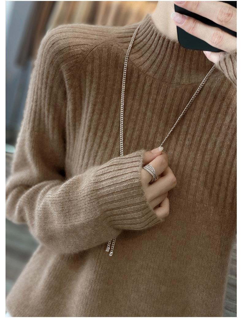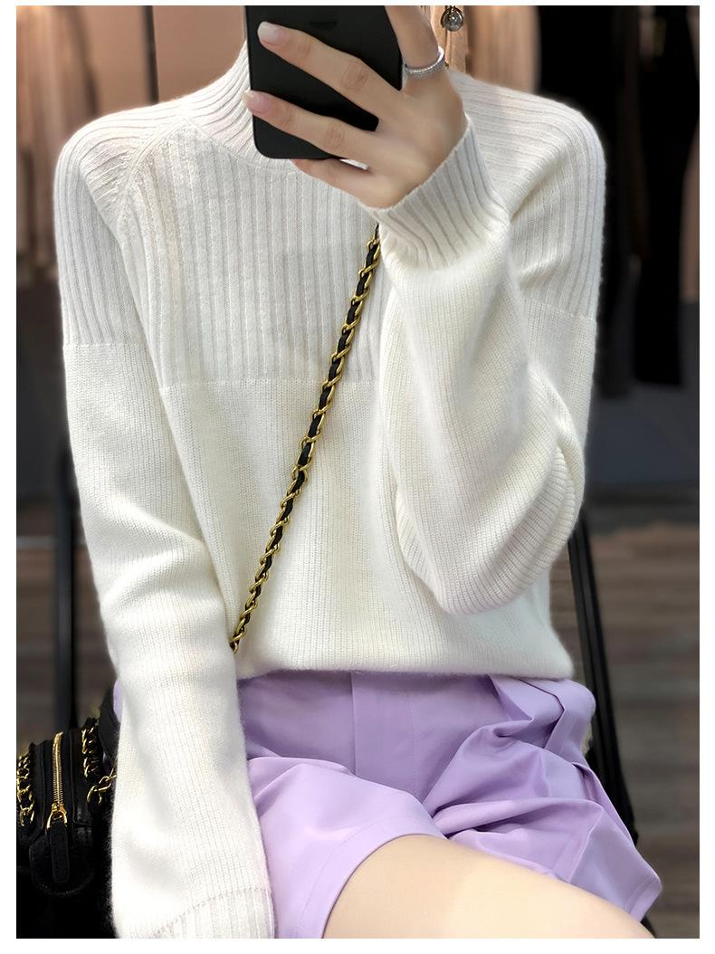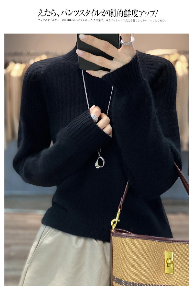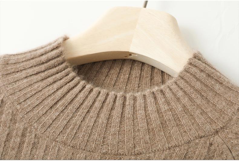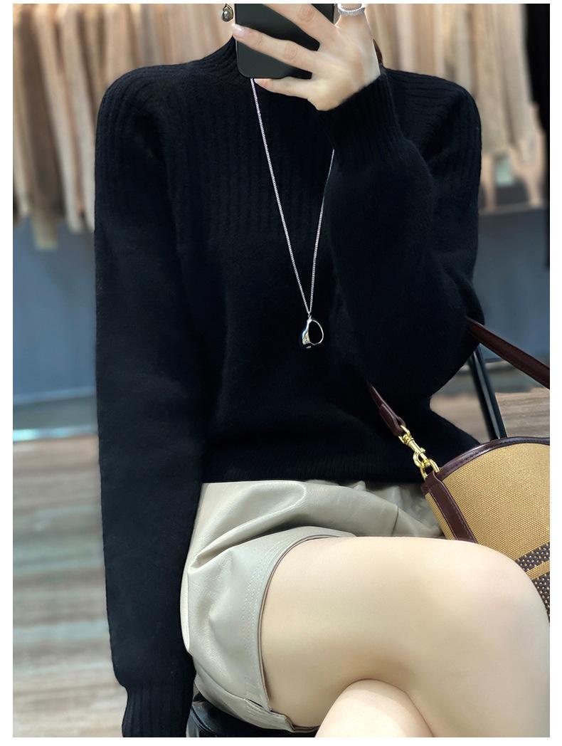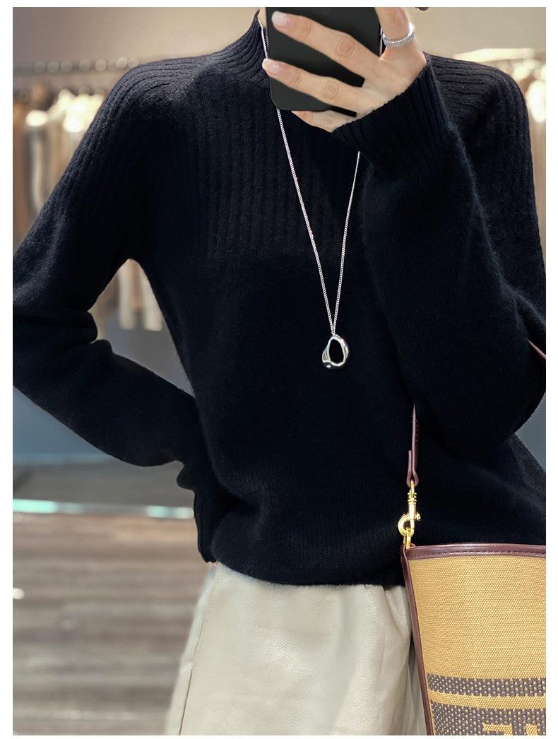 2025 Nuevo Suéter de Punto de Lana Pura Otoño e Invierno para Mujer Estilo Coreano Cuello Alto Medio Manga Larga Suéter de Punto Camisa Básica