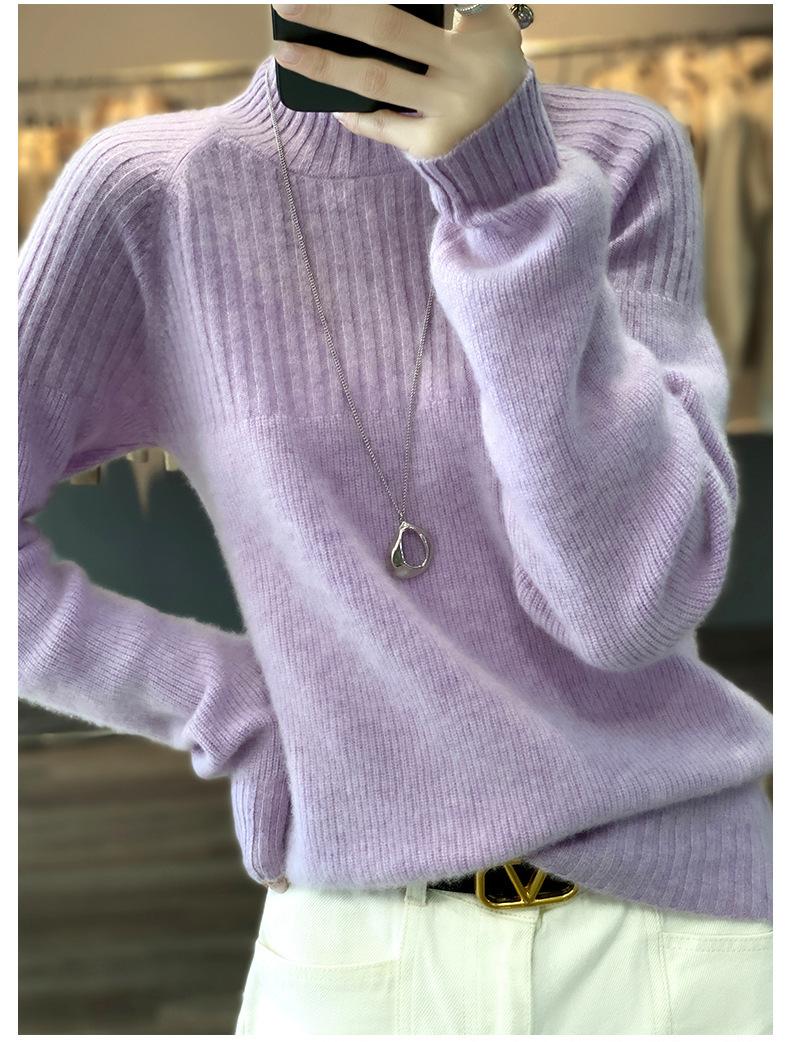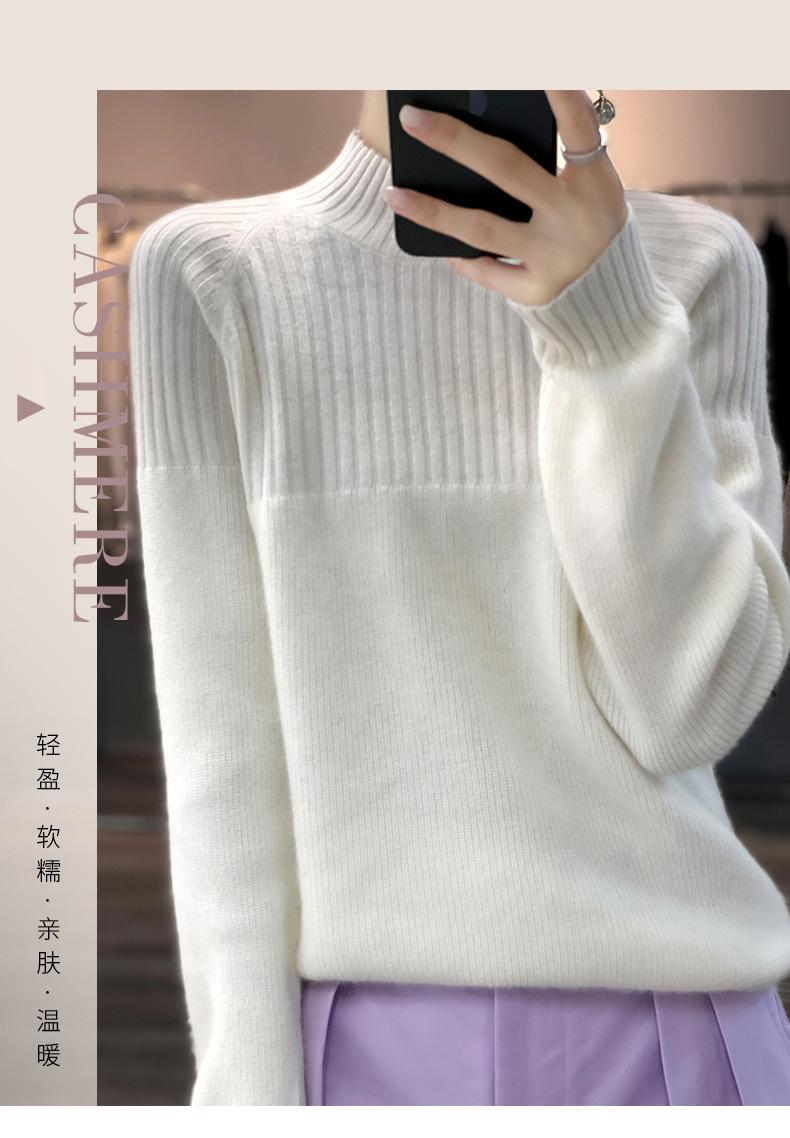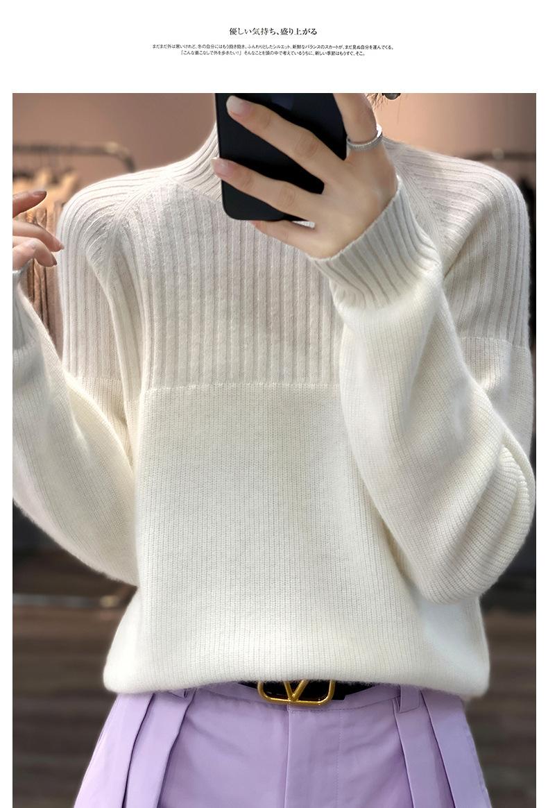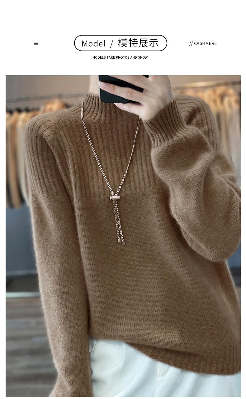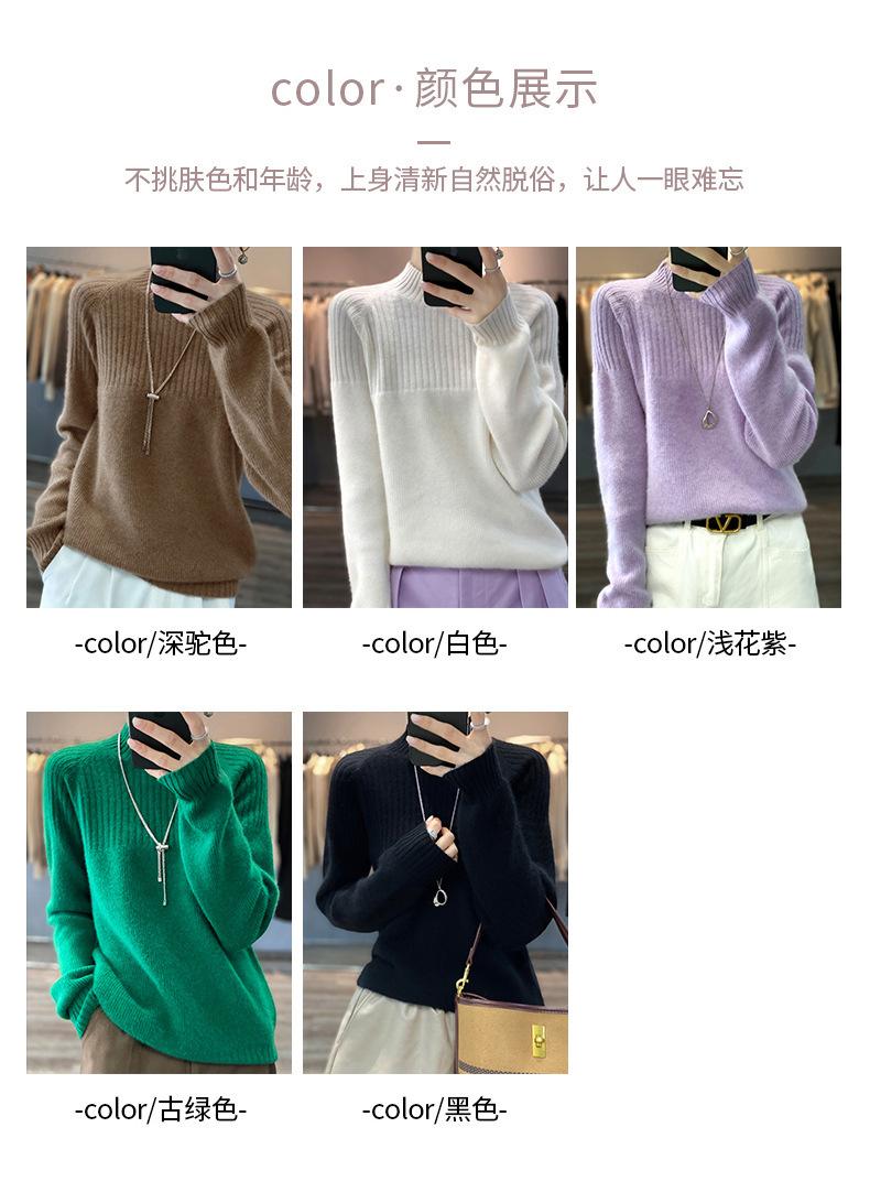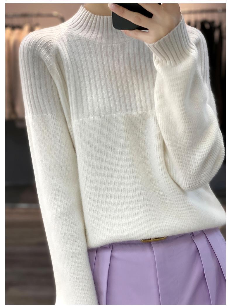 2025 Nuevo Suéter de Punto de Lana Pura Otoño e Invierno para Mujer Estilo Coreano Cuello Alto Medio Manga Larga Suéter de Punto Camisa Básica