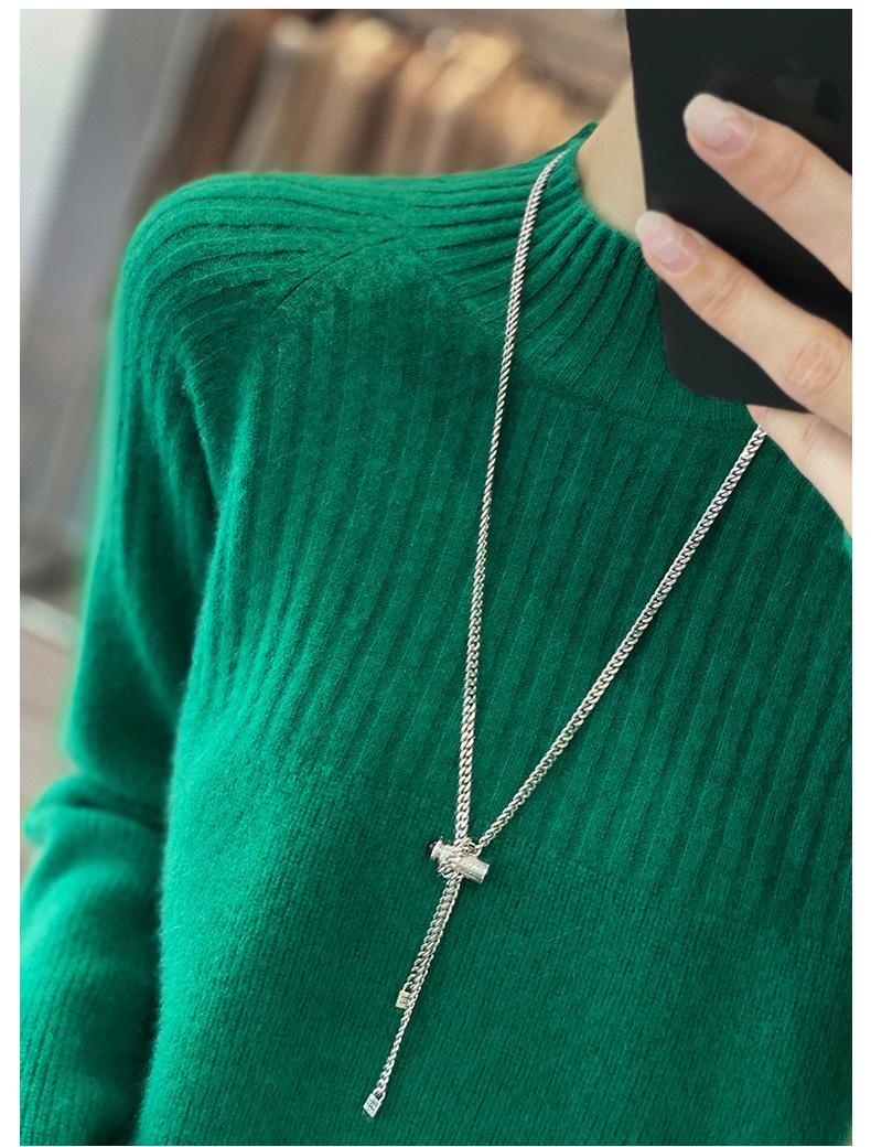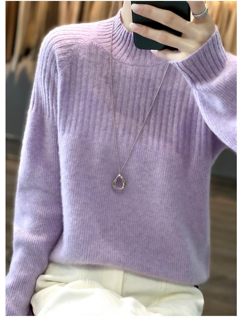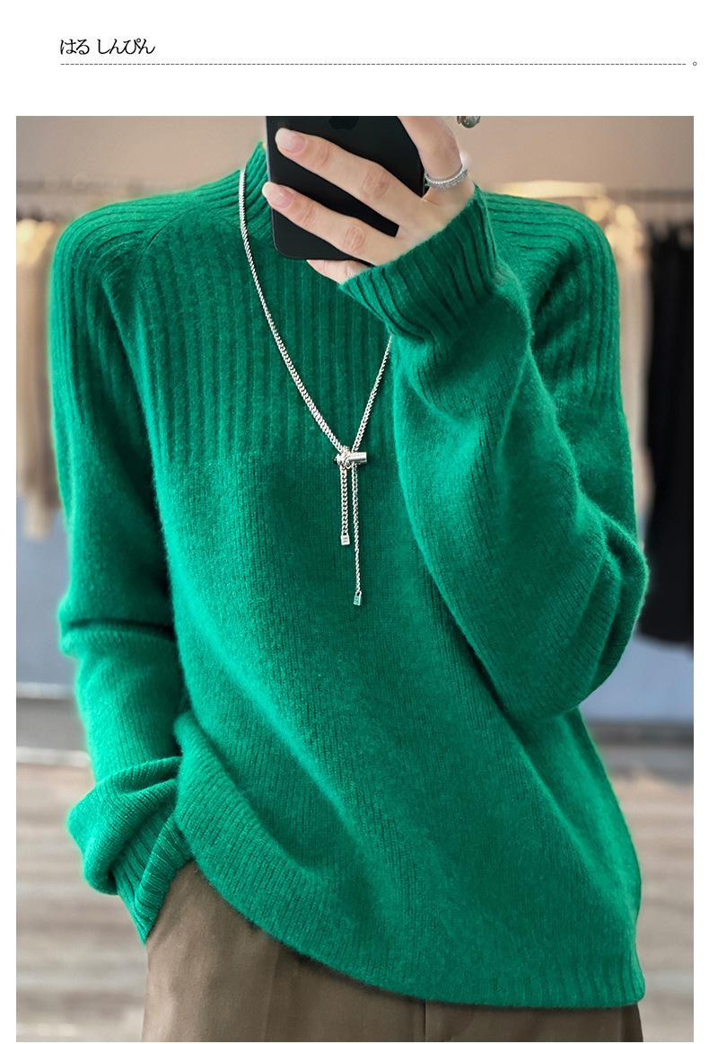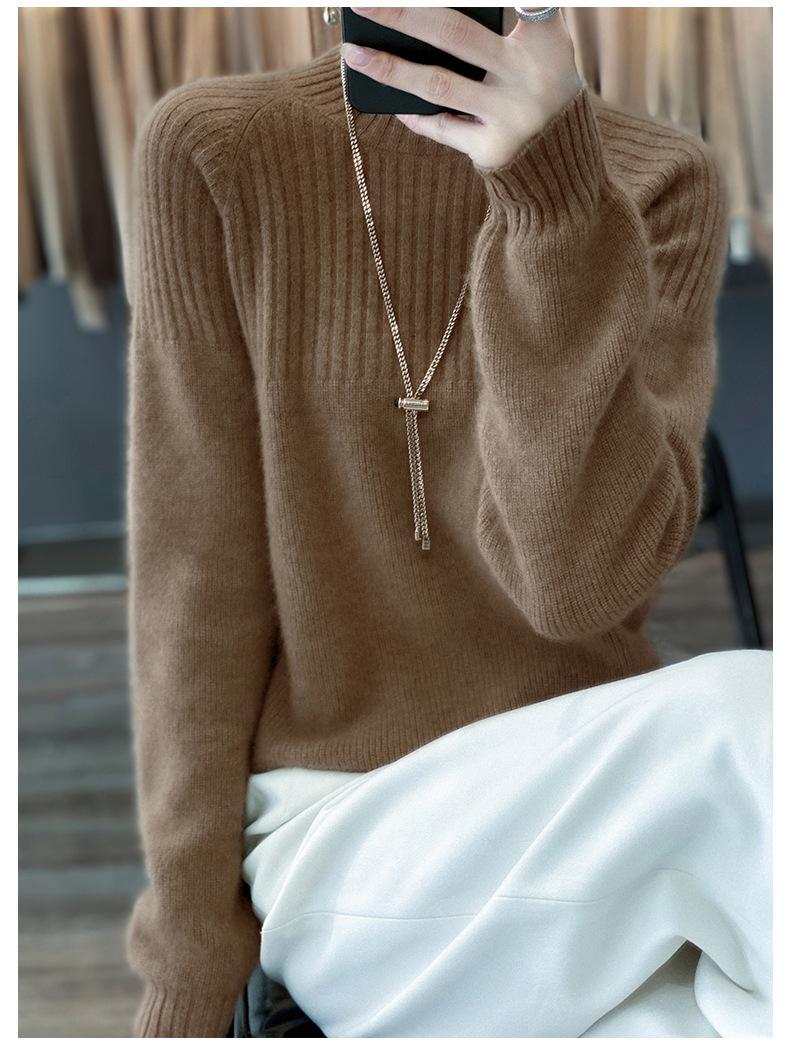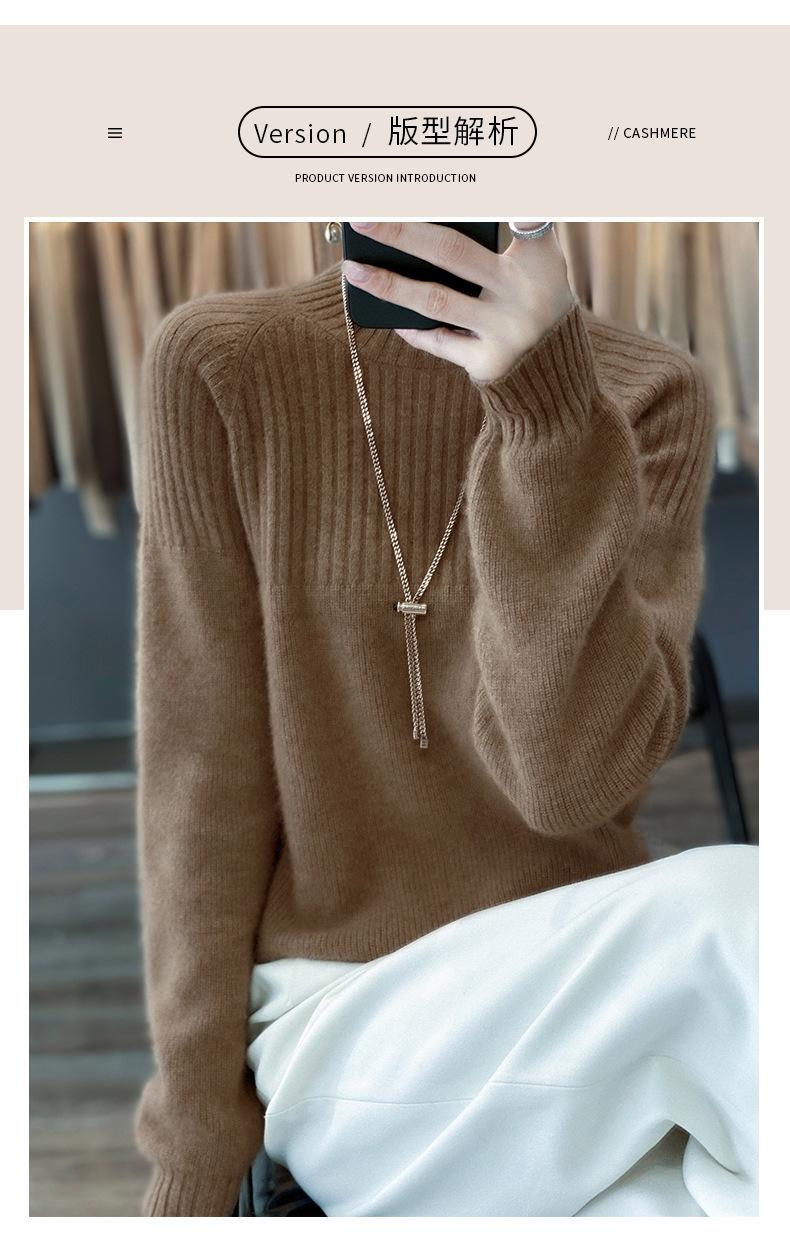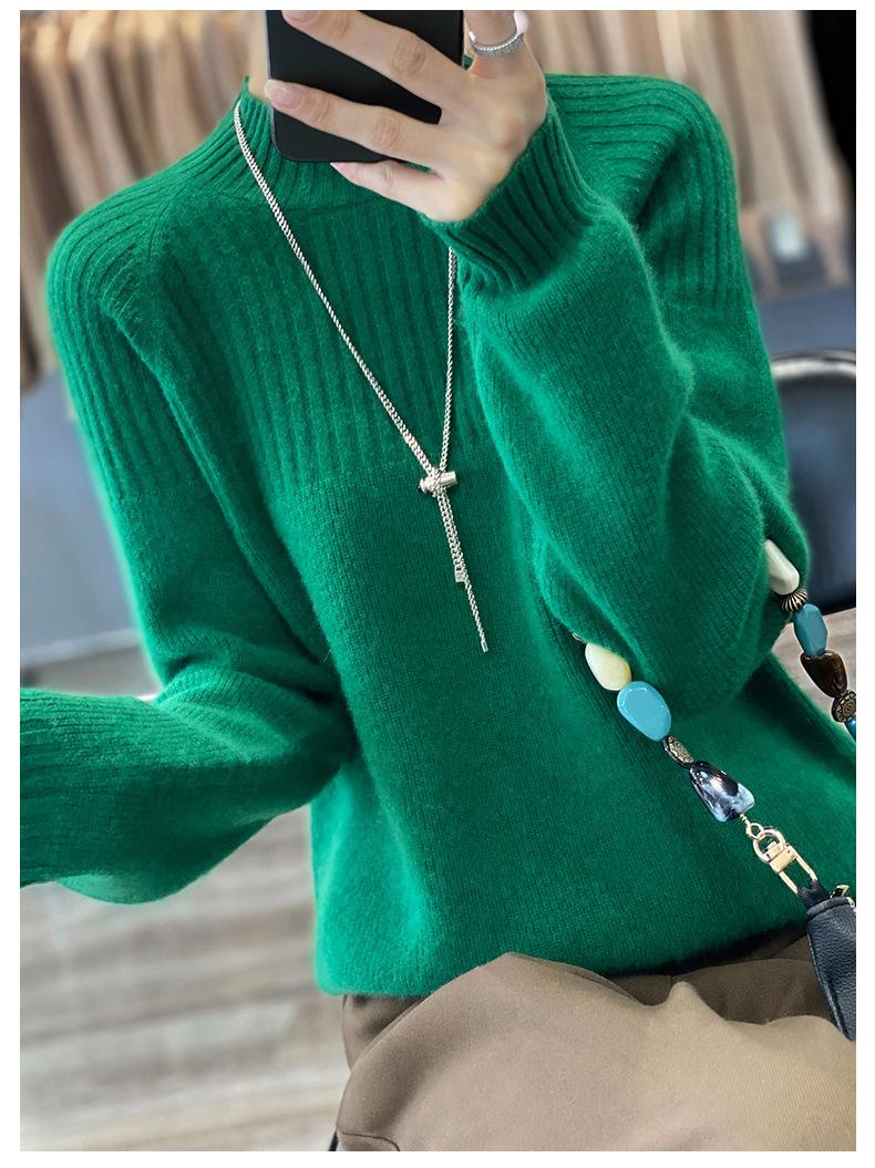 2025 Nuevo Suéter de Punto de Lana Pura Otoño e Invierno para Mujer Estilo Coreano Cuello Alto Medio Manga Larga Suéter de Punto Camisa Básica