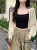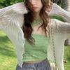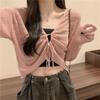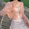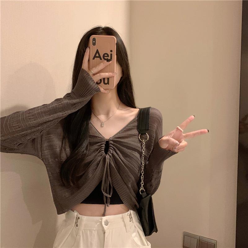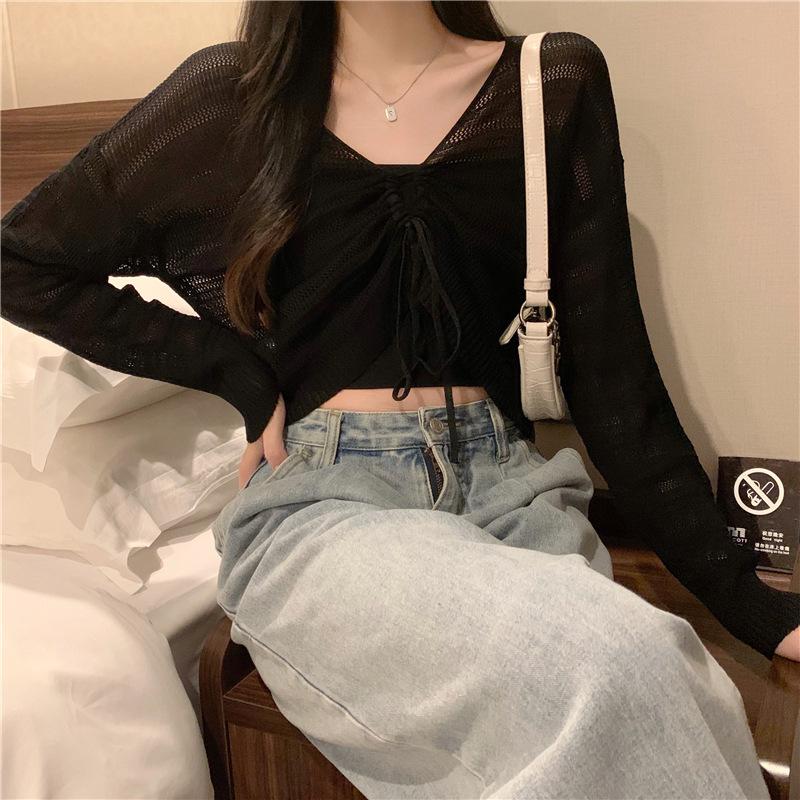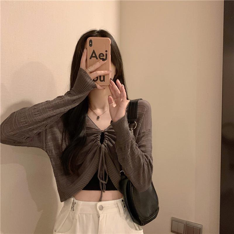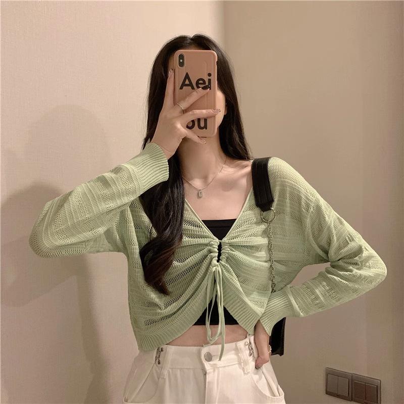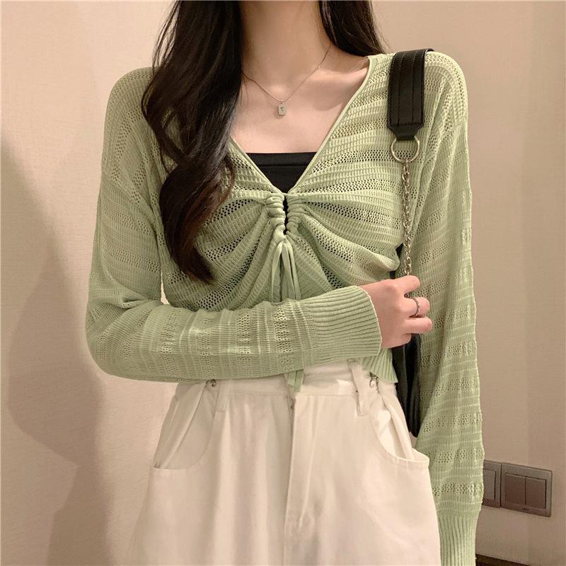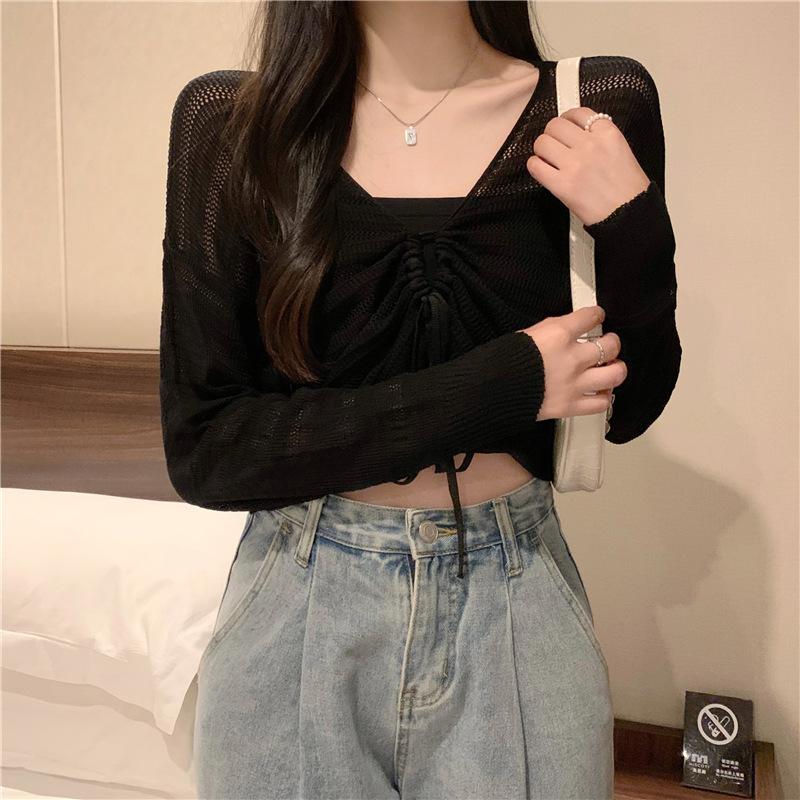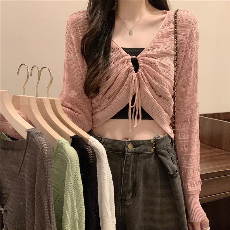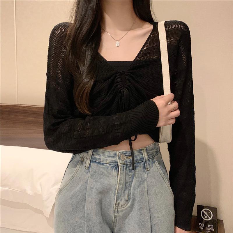 Cárdigan de punto con cordón calado estilo coreano para mujer, protector solar, blusa exterior con tiras pequeñas y finas de verano