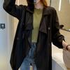 Gabardina de estilo coreano de alta calidad para mujer, Abrigo fino de longitud media de otoño nuevo 2025, Ropa de mujer de moda