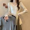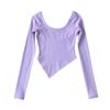Camiseta básica ajustada de manga larga con cuello irregular de color liso para mujer europea y americana de primavera C12232