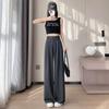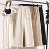 Pantalones Casuales de Satén Jacquard Estilo Chino Nuevo con Cintura Elástica para Mujer Primavera 2025 Cintura Alta Drapeados Rectos de Pierna Ancha