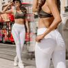 Pantalones de yoga ajustados de cintura alta para correr, de estilo europeo y americano, con bolsillos y leggings elásticos, ropa exterior de moda para mujer, pantalones de comercio exterior en stock.