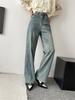 Jeans de pierna recta y ancha con bolsillo trasero bordado Mengzi Xi para mujer, pantalones largos hasta el suelo con caída vintage de primavera X1854