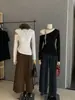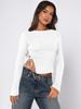 Top de manga larga con cuello cruzado irregular estilo celebridad de internet, corto de cintura alta con bajo curvo, estilo occidental, camiseta combinable