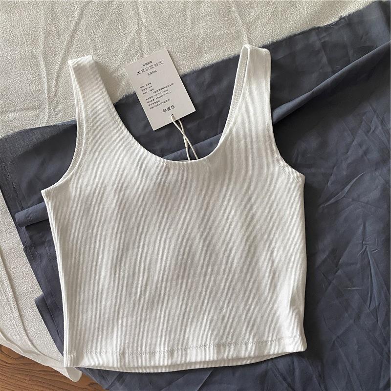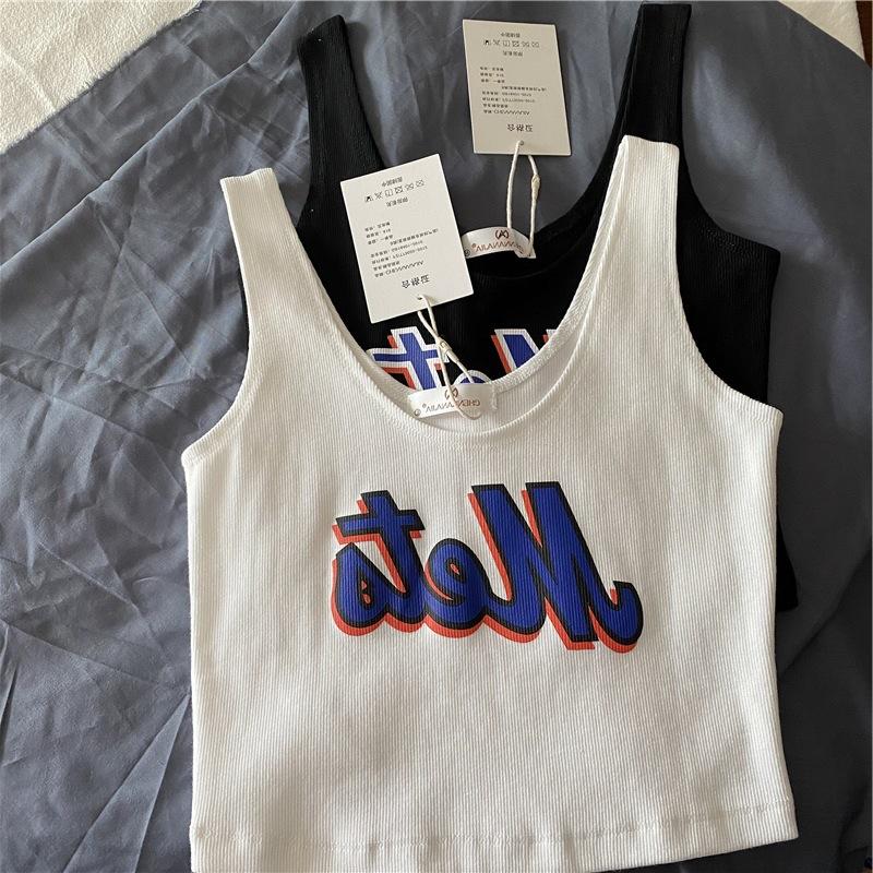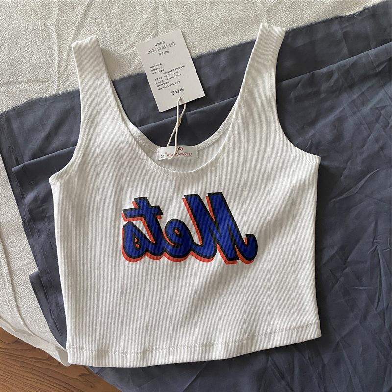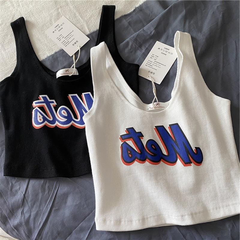 Una generación de cabello corto estampado chaleco pequeño femenino versión coreana de la marea sentido del diseño de cintura alta ombligo expuesto ropa de uso exterior lote de comercio exterior